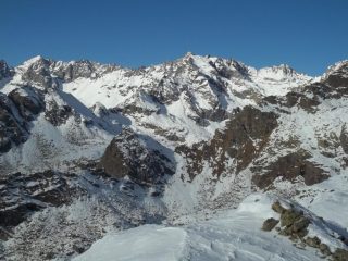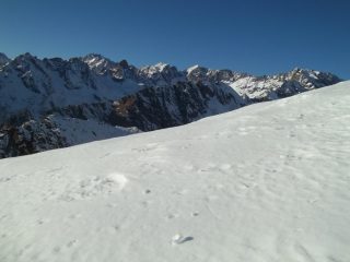 Trovato neve abbondante che ha rallentato un po’ la prosecuzione, ma a tratti anche buona, in ogni caso queste condizioni hanno reso la gita ancora piu’ bella ed interessante, con un lungo percorso quasi tutto su cresta tra la Praghetta e la Rossa.