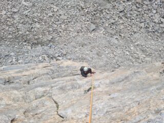 Chiodatura ok (tranne forse un paio di spit un po’ lunghi nel 7° tiro), roccia buona lungo la via.