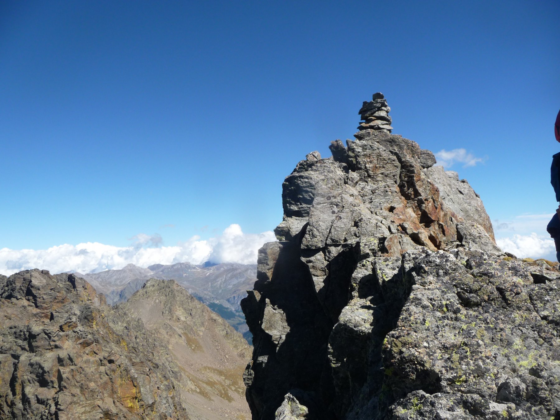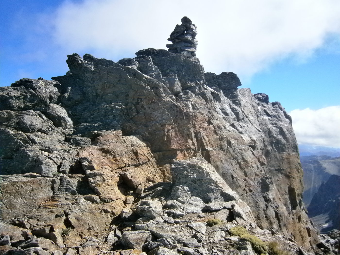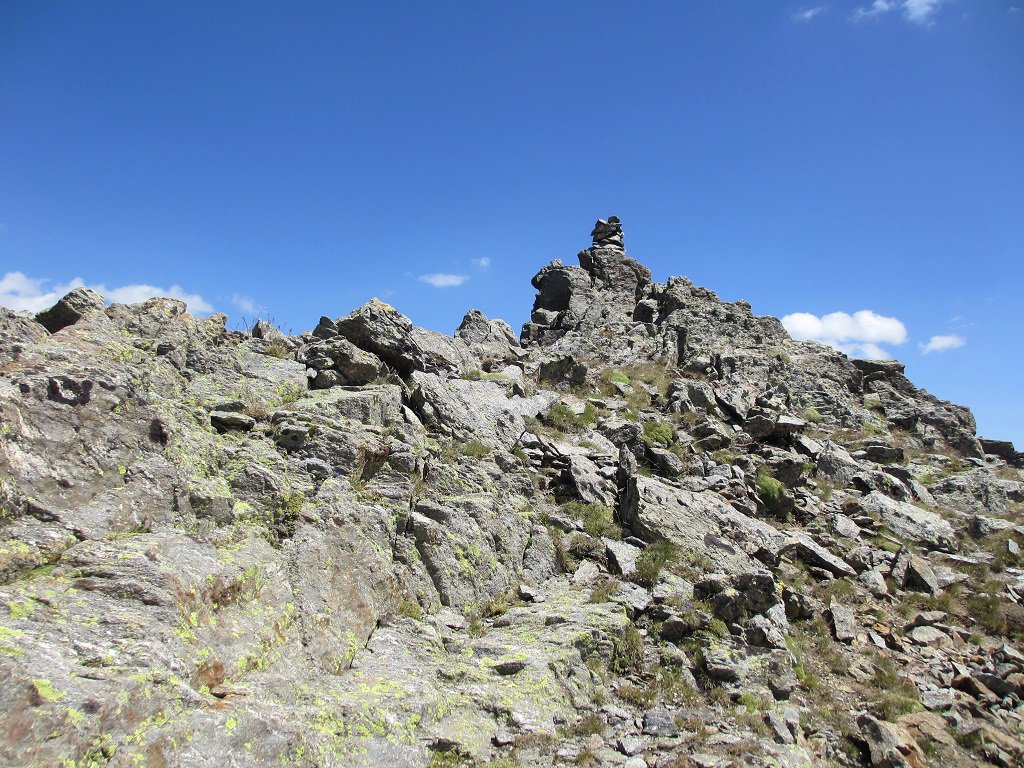 Da qui, svoltando a destra per una traccia e rocce rotte si perviene alla cima in pochi minuti, superando in ultimo 2 metri che richiedono attenzione.