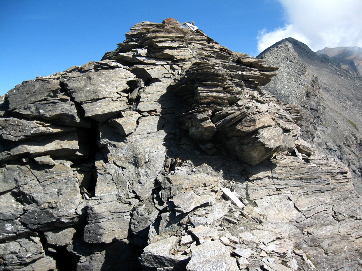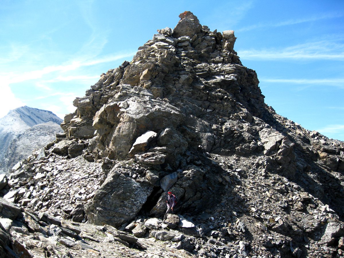 Dal rifugio Savoia si risale per il sentiero che porta al lago Rosset che si contorna sulla destra orografica, il sentiero poi risale un breve pendio con bella visuale sul vicino lago Leytaz, si risalgono poi alcuni dossi erbosi lungo il sentiero, sino ad arrivare nel pianoro superiore in vista del colle e dei tre laghetti Chanavey posti sotto il colle Rosset, a questo punto il sentiero con una lunga serie di svolte, risale ripido l’ultimo pendio sino raggiungere il colle (indicazioni su un cippo di pietra) – Da questo punto si risale la cresta sulla sinistra prima abbastanza ampia e poi stretta e rocciosa superando alcuni speroni rocciosi sino a giungere sulla punta del Rosset