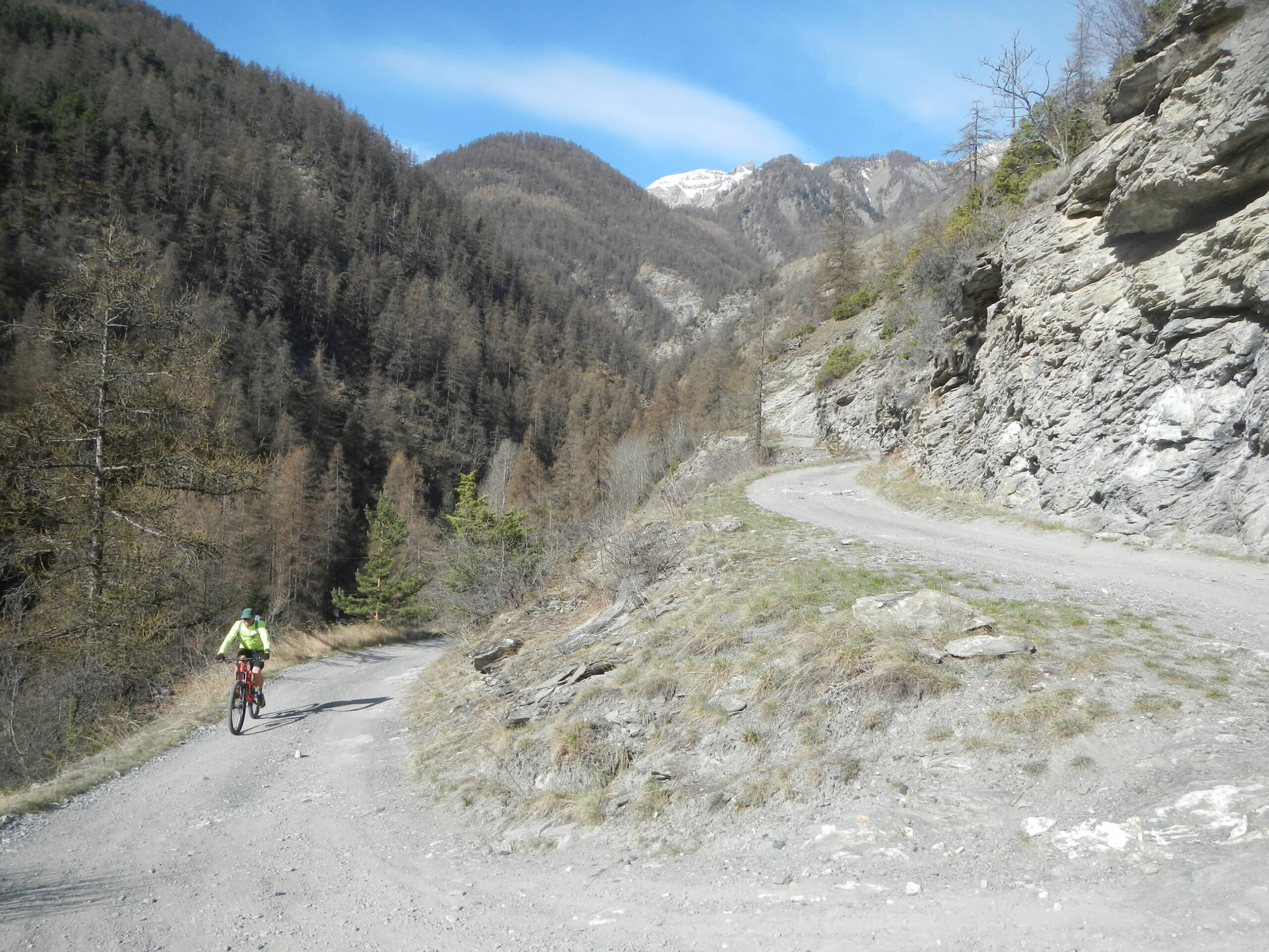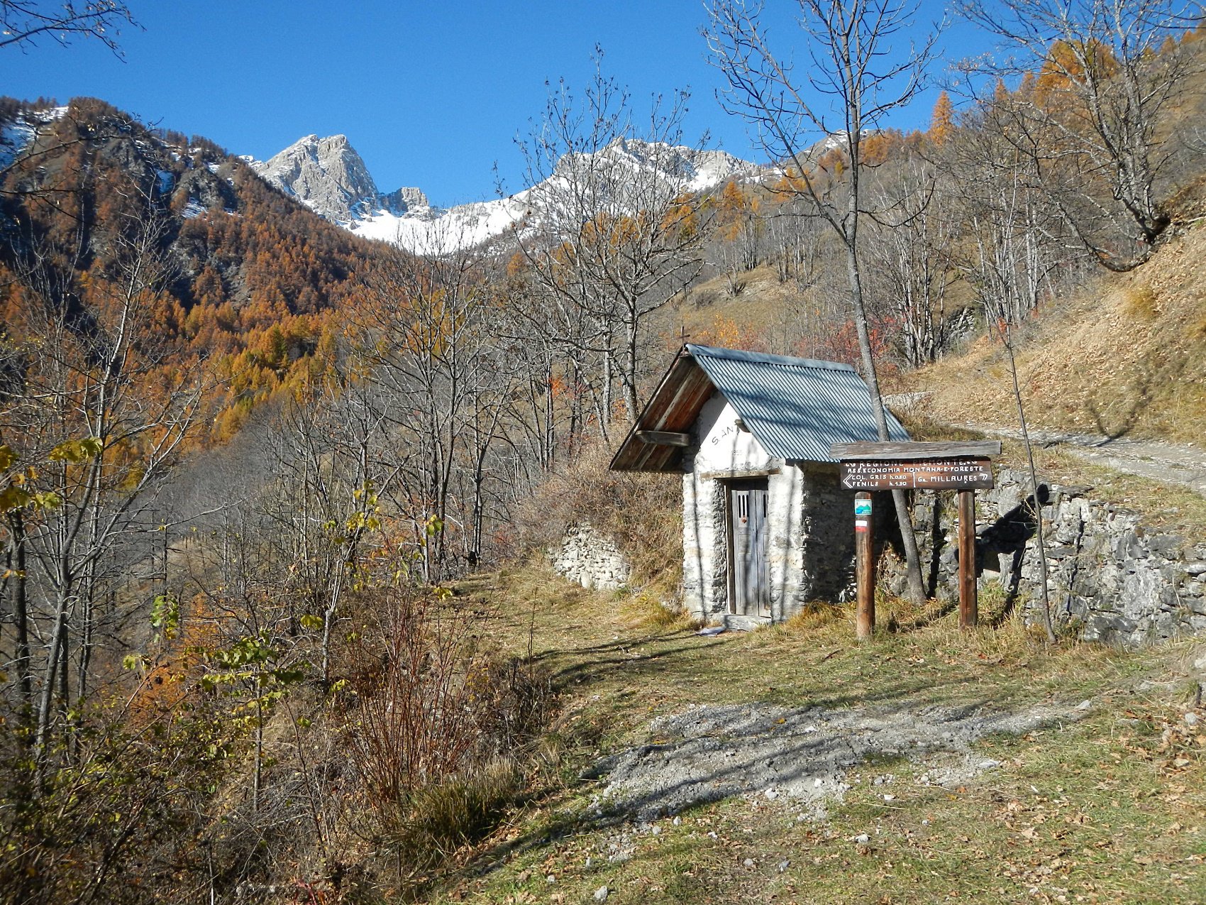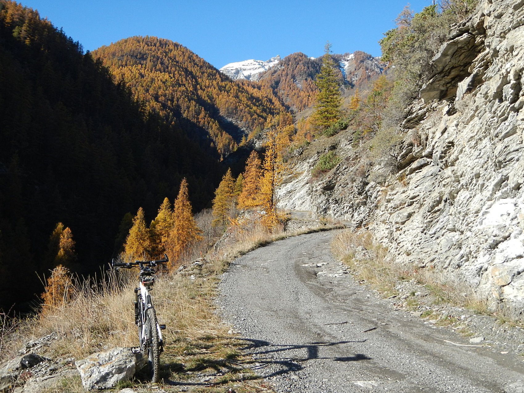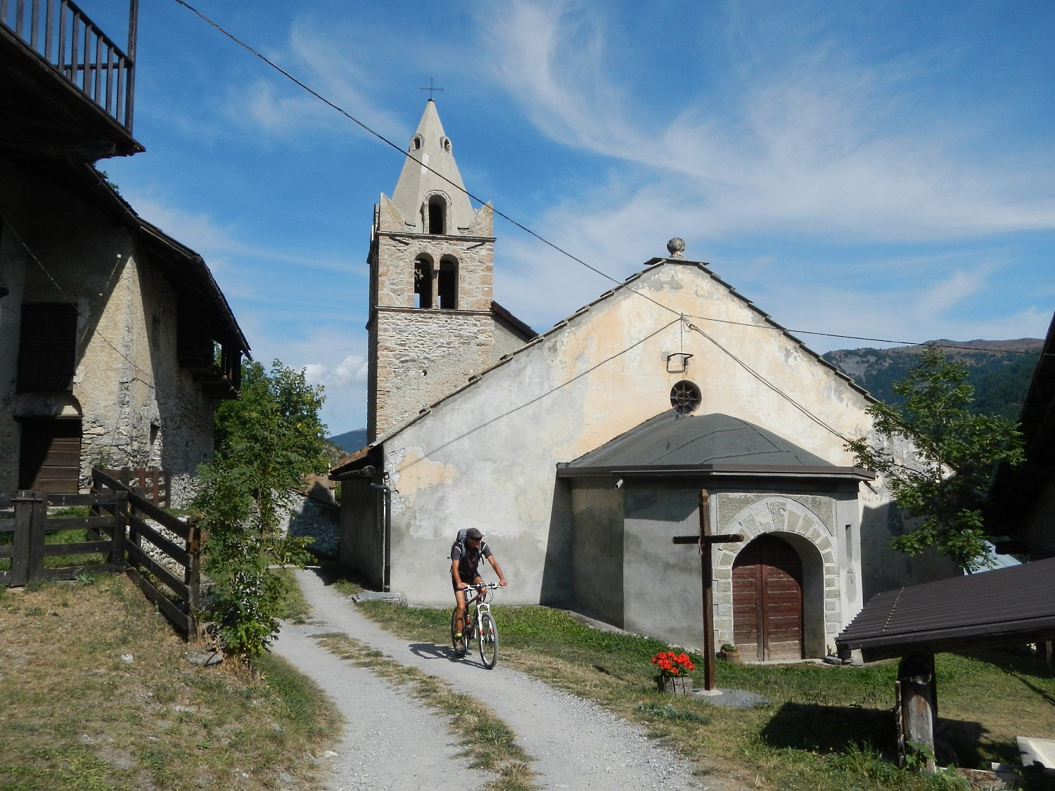Al termine della borgata, dalla cappella di Sant’Antonio parte sulla sinistra una bella mulattiera, ben pedalabile, che attraversa il Vallone di Desertes, con tratti in leggera discesa-attraversamento di un ponticello-leggere risalite, fino ad un bivio con uno sterrato.