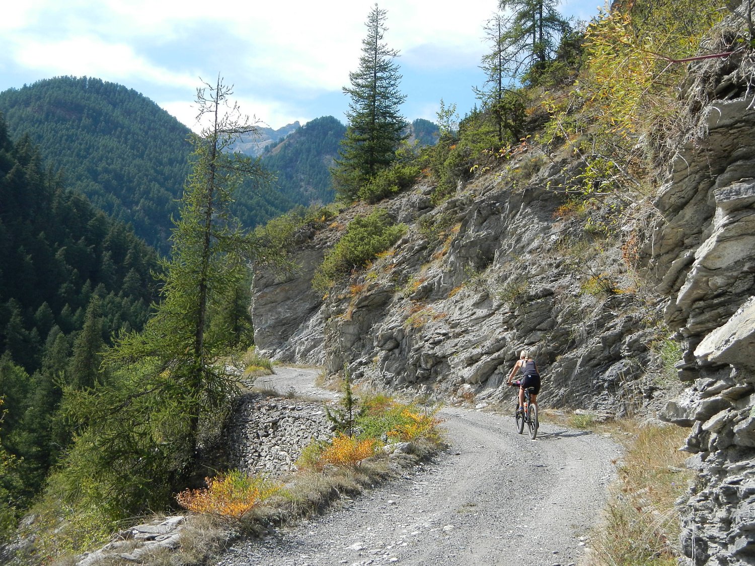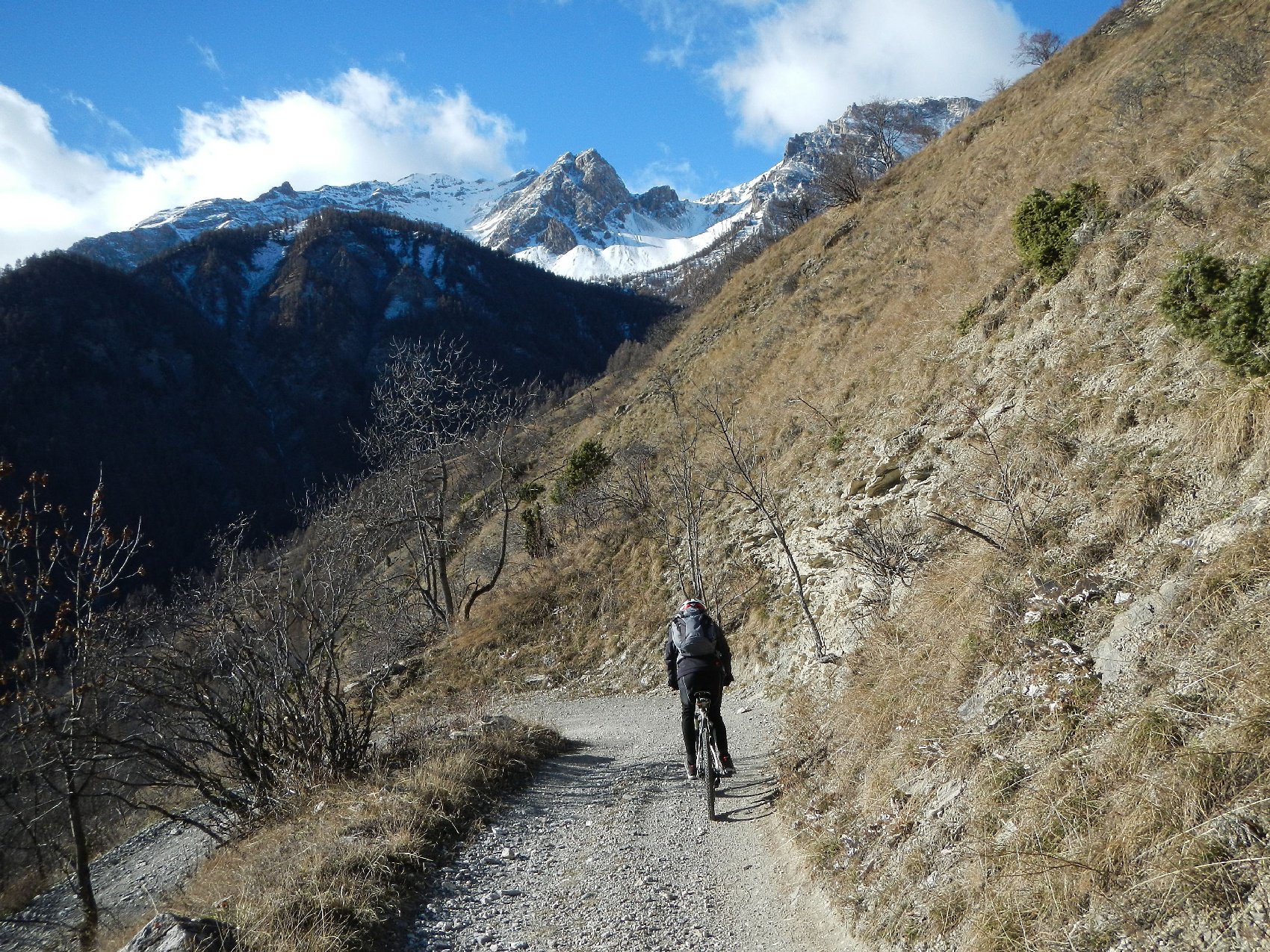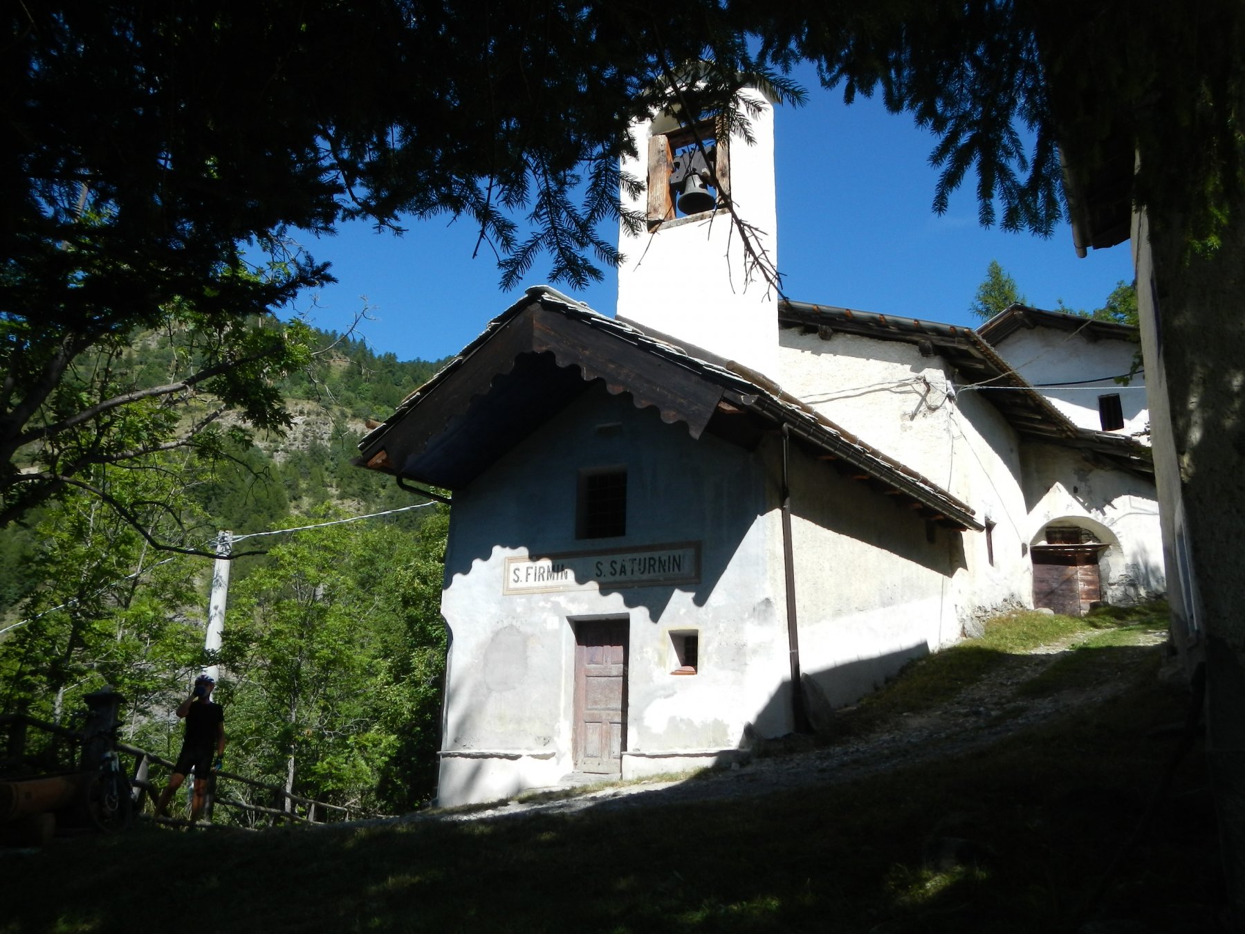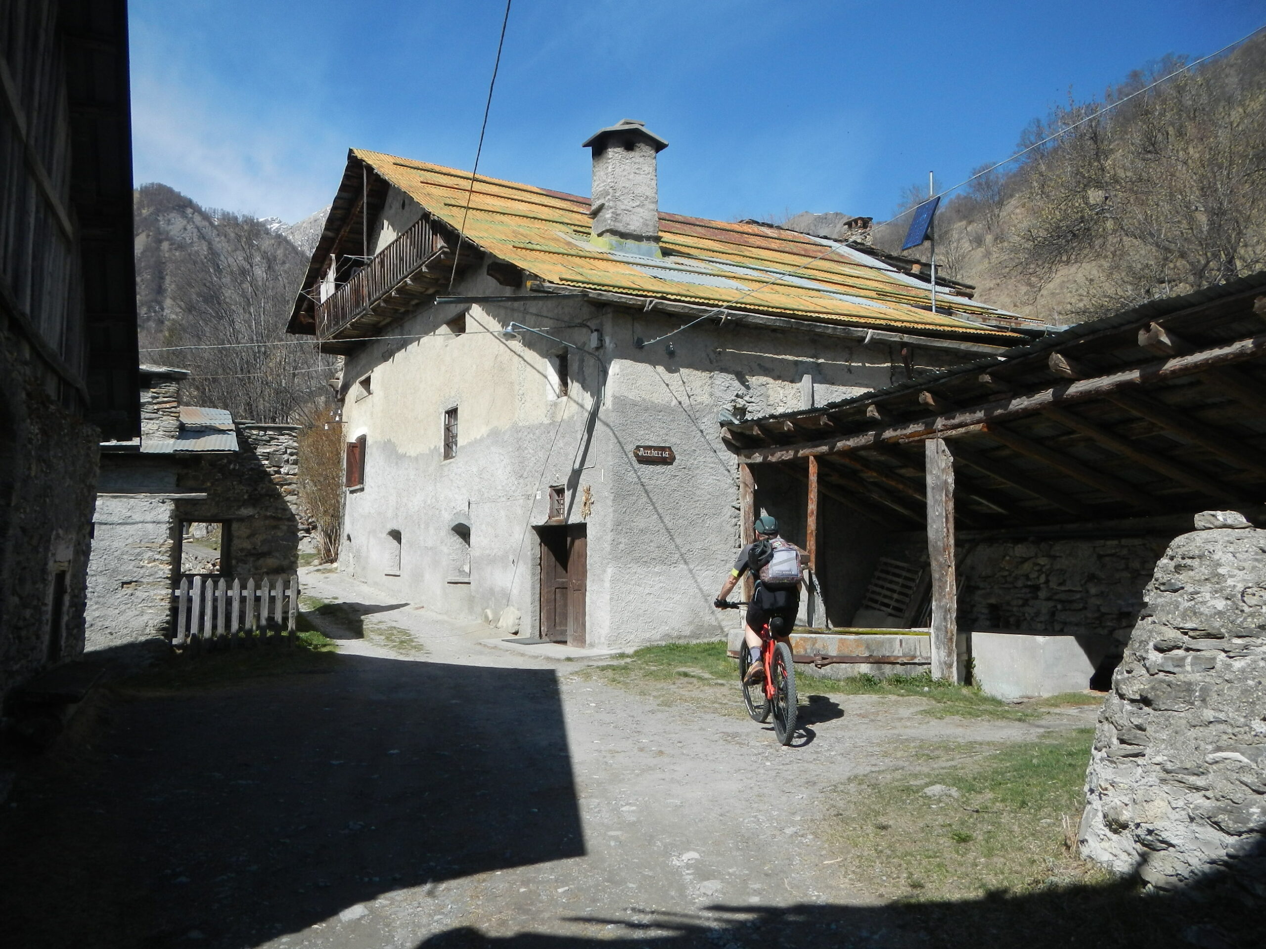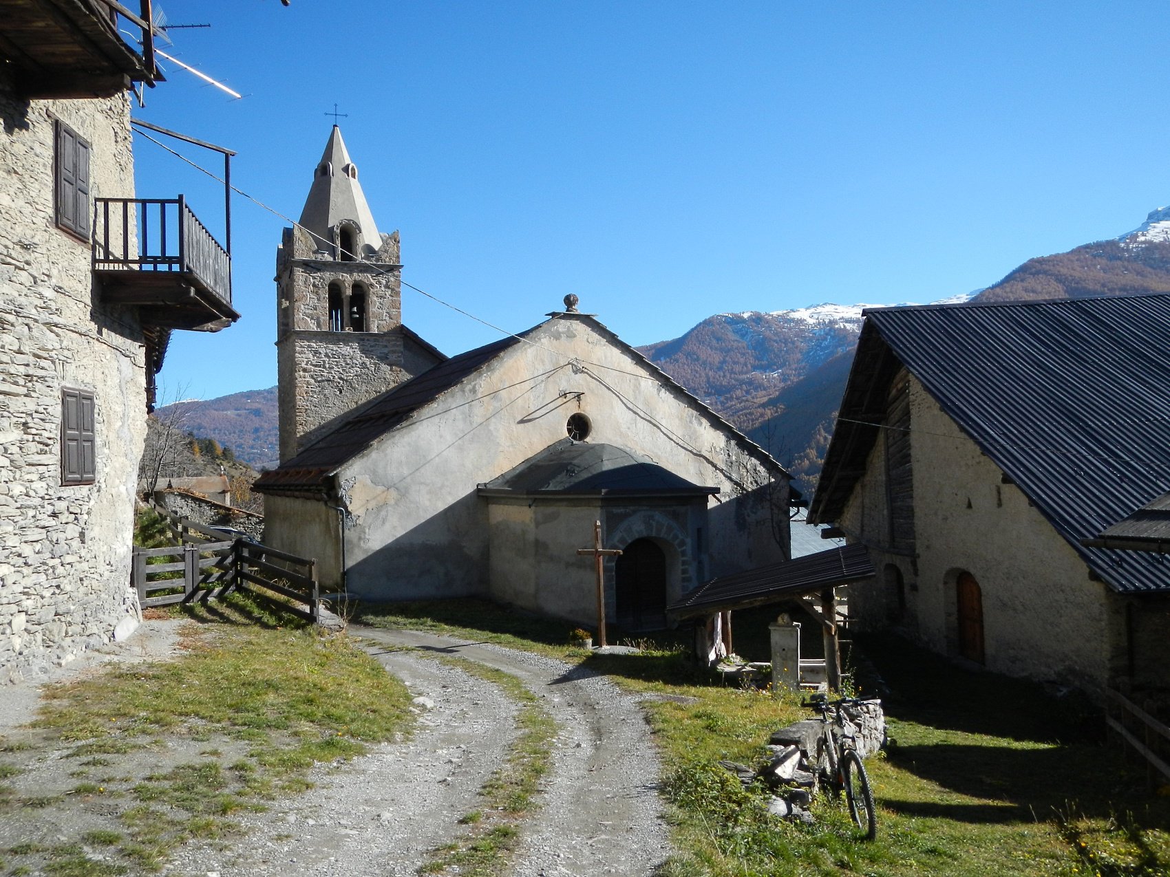 Al termine della borgata, dalla cappella di Sant’Antonio parte sulla sinistra una bella mulattiera, ben pedalabile, che attraversa il Vallone di Desertes, con tratti in leggera discesa-attraversamento di un ponticello-leggere risalite, fino ad un bivio con uno sterrato.