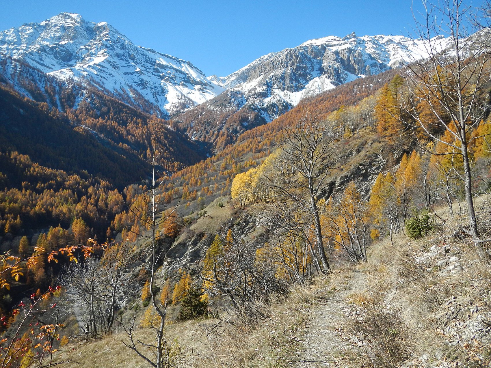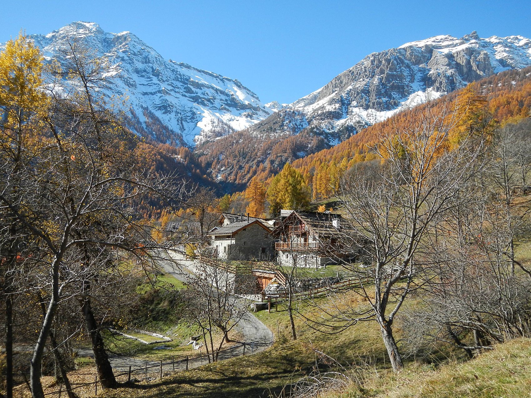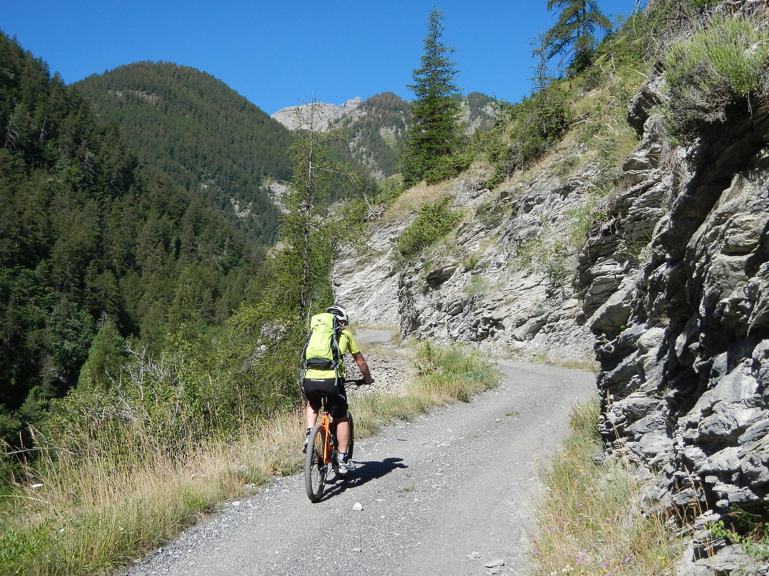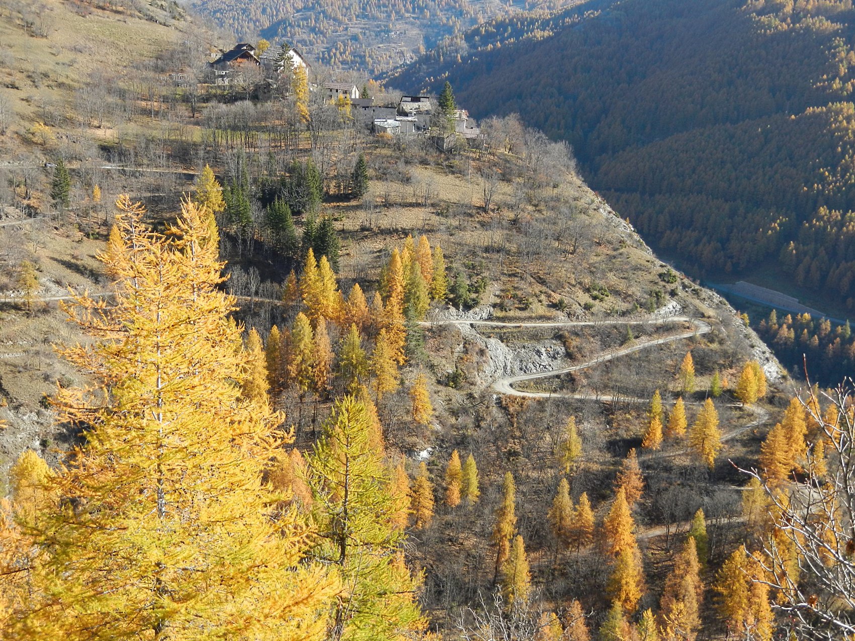 Al termine della borgata, dalla cappella di Sant’Antonio parte sulla sinistra una bella mulattiera, ben pedalabile, che attraversa il Vallone di Desertes, con tratti in leggera discesa-attraversamento di un ponticello-leggere risalite, fino ad un bivio con uno sterrato.