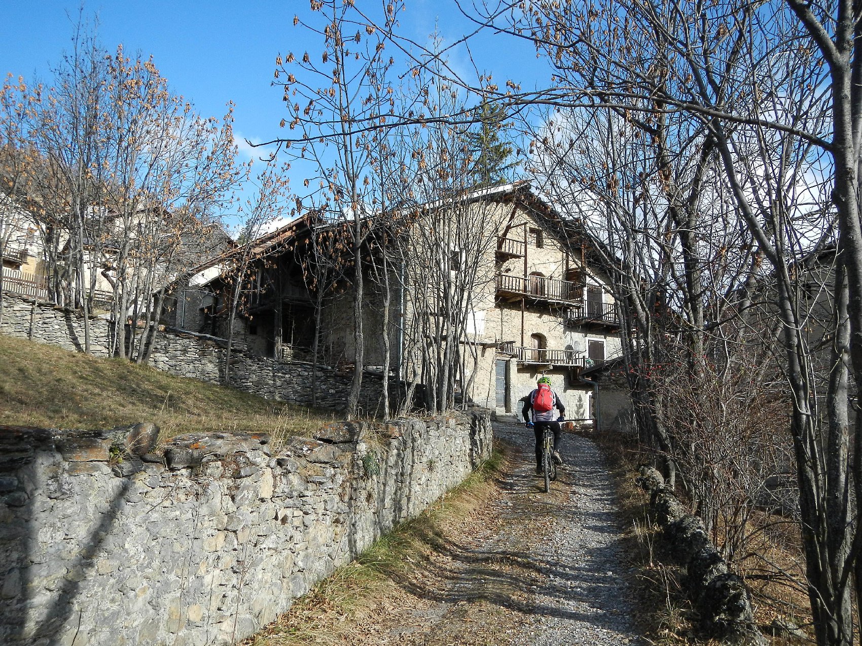 Su sterrato si scende velocemente su Fenils.