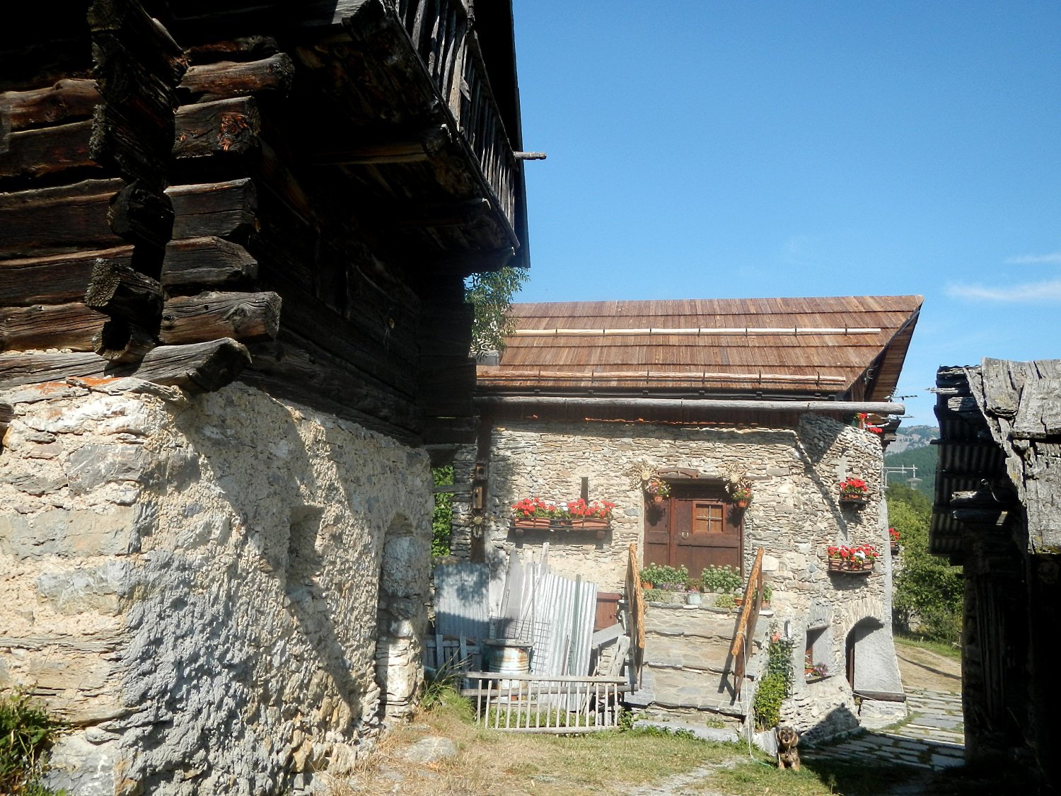 Voltando a destra, superata una rampa molto sostenuta (si spinge) si perviene al Colletto Rosso 1616 m. e in leggera discesa alla bella borgata del Colletto.