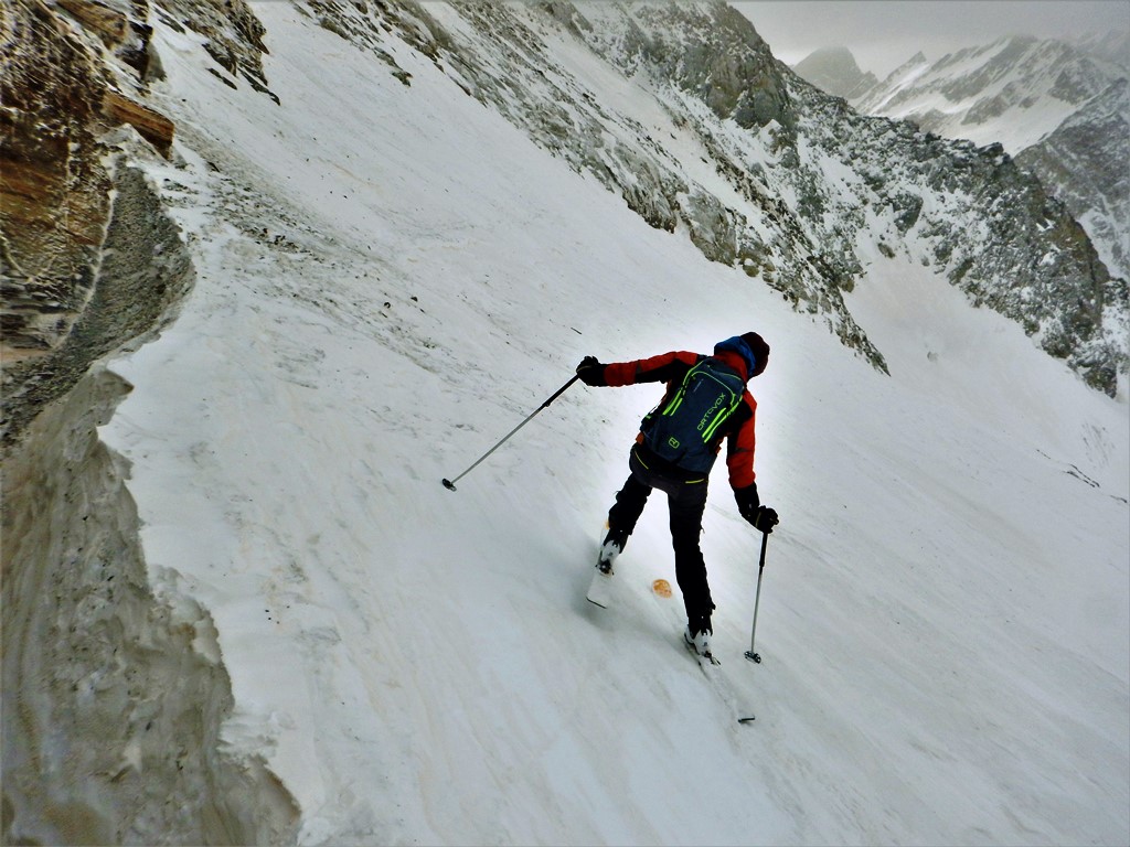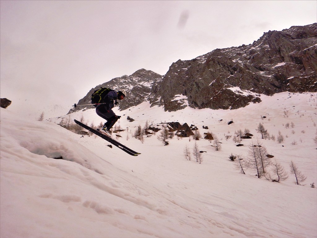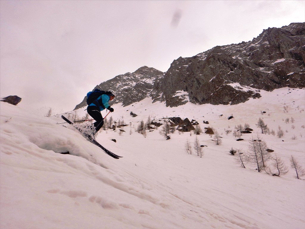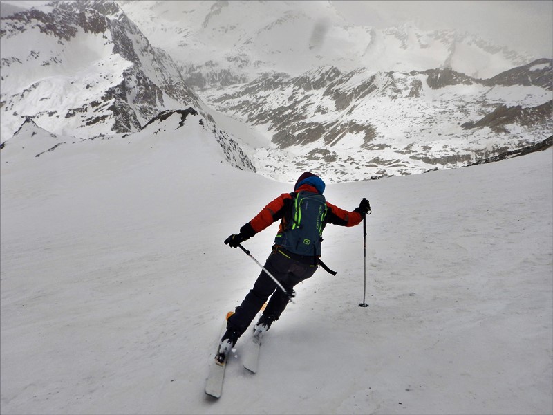 Gita effettuata dalla Valle Rossa, in salita passando per l’itinerario classico ai piedi del Giogo Lungo e tenendo il margine settentrionale del gh. della Vedretta Rossa. In discesa abbiamo invece tenuto la sx. orografica del ghiacciaio con pendii più diretti. In alto piccolo strato di farina recente non leggera ma ben sciabile; nella parte centrale lungo pianoro su neve lenta, comunque scorrevole. Nuovamente belle pendenze prima del bosco su neve umida, comunque gestibile in quanto compattata dai precedenti passaggi. Nel bosco abbiamo seguito il sentiero su neve compatta in quanto al di fuori la neve era decisamente sfondosa.