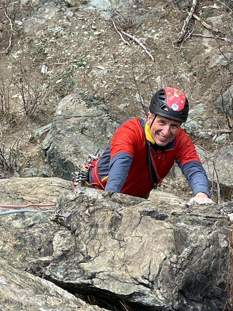 Non cosi bella come la precedente onde gravitazionali, licheni invadenti. Usciti sul pilastro finale sulle due linee nuove. Molto belle entrambe ma il fessurone vale la giornata