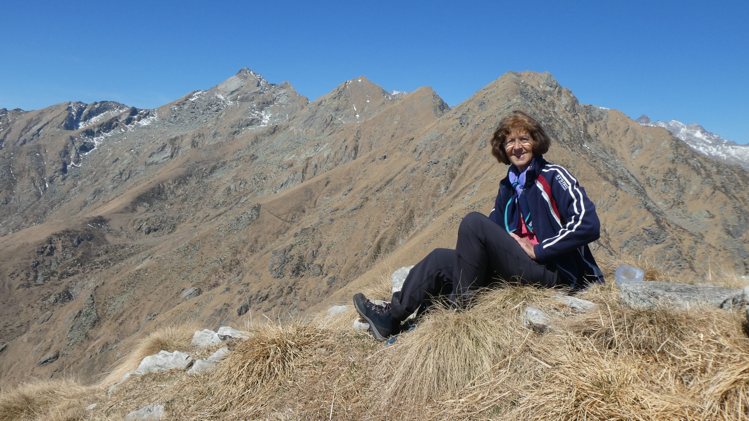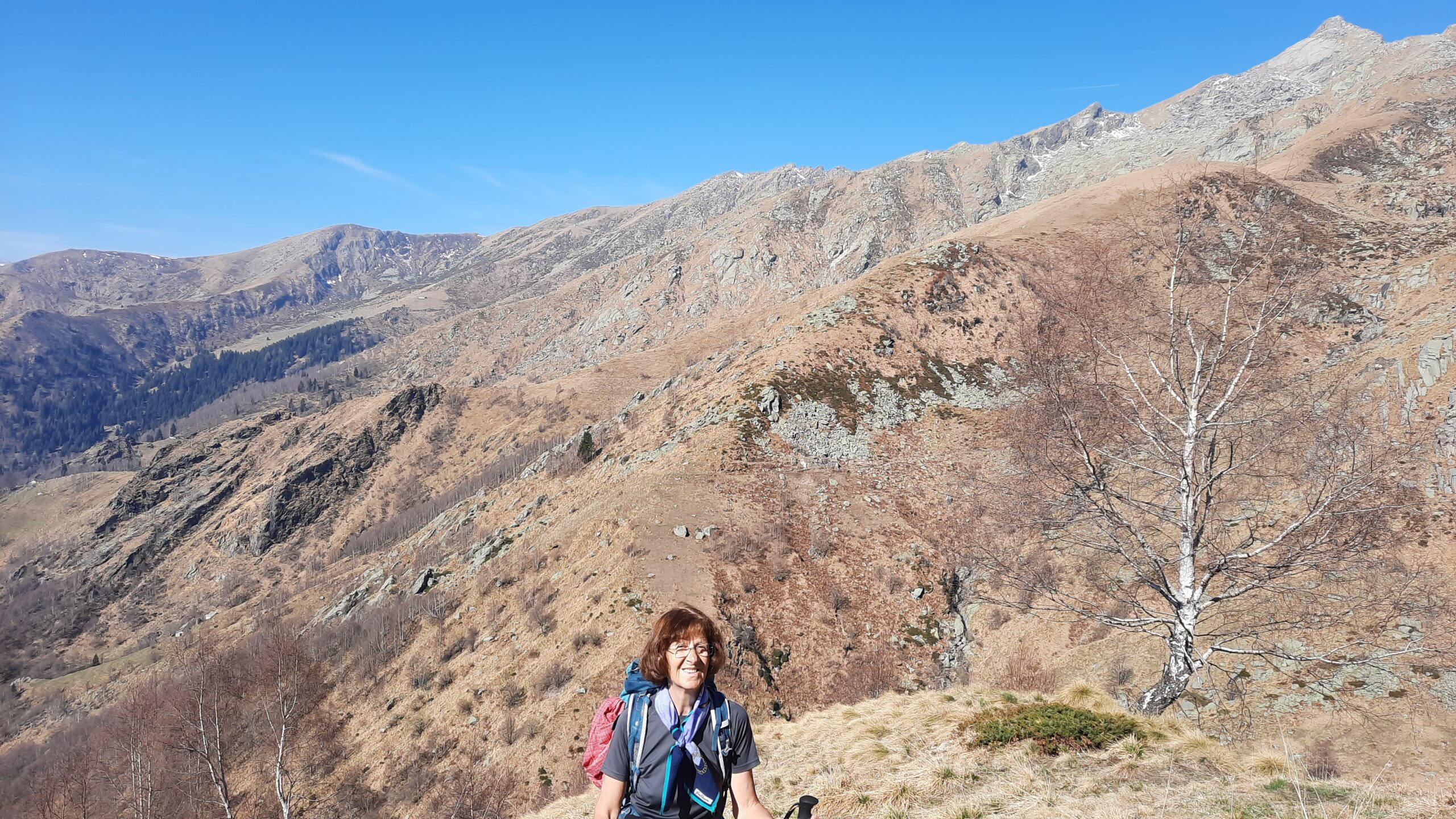 Bella giornata e bella cima per noi nuova, che ha valorizzato una gita nel canavese nata per incontrare altri orsi… I tempi segnati alla partenza sono un po’ abbondanti, in meno di due ore siamo saliti al colle Crest, e di lì in meno di mezz’ora in cima. Bel sentiero non sassoso e ben segnalato fino al colle, poi ripido traverso su traccia fra erba olina e ultimo tratto su cresta facile ma ripida con qua e là erba olina brinata… Grandiosi panorami dalle cime delle Valli di Lanzo al vicino Colombo, dalle cime della val Soana fino al massiccio del Rosa.