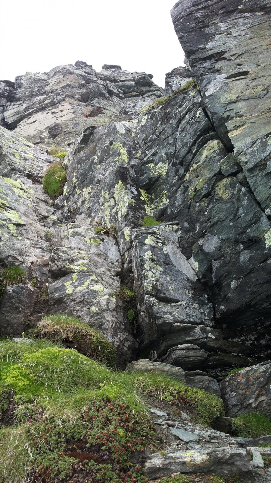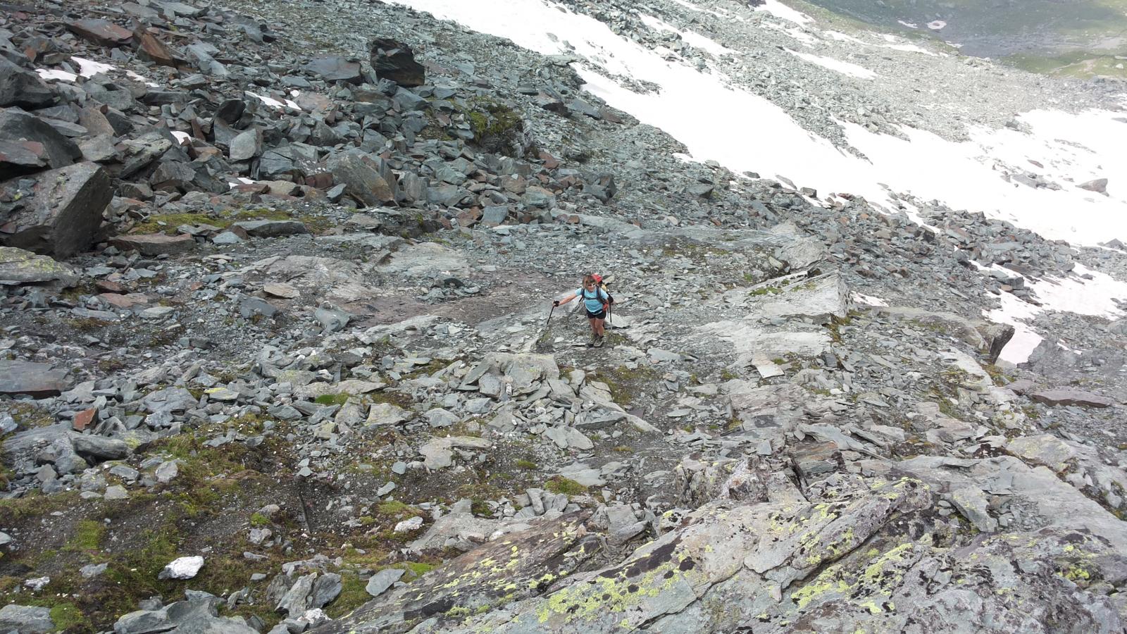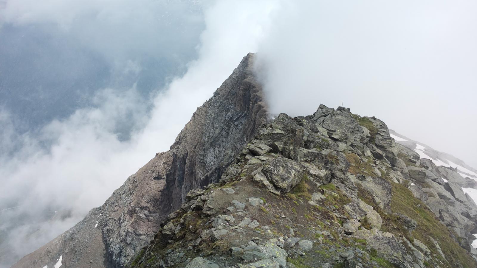 Partendo da Ostafa (secondo tratto di cabinovia da Champoluc), si percorre inizialmente il sentiero n 12 (direzione Colle Pinter e Testa Grigia), facendo attenzione, dopo circa 600 metri, in corrispondenza di alcuni roccioni (possibili tubi scoperti dell’acqua), alla deviazione verso monte, con indicazione semicancellata (forse volutamente) del segnavia 11 (o 11A). Nei primi metri il sentiero è tracciato, ma presto si perde e si deve continuare a salire piegando verso est, fino a raggiungere l’ampia conca di un riale, che consente di individuare con maggior consapevolezza la direzione di salita, che resta comunque orientativa, lungo i ripidi pendii erbosi o detritici che fiancheggiano il riale (o la sua traccia), al centro del vallone su cui incombono il Testa Grigia (a destra) ed il Bec Forcu (a sinistra). Verso quota 2700 m circa si supera un salto roccioso, da affrontare preferibilmente tenendosi sui ripidi prati a destra del canale detritico (sinistra idrografica). Al di sopra, dopo un breve tratto di minor pendenza, inizia il tratto più delicato, in cui si deve individuare la posizione della sella, alla sinistra di due gendarmi (corni rocciosi) posti alla fine della linea di cresta del Testa Grigia, anche se è possibile incontrare qualche traccia ed eventuali ometti sul percorso. Il percorso migliore piega tendenzialmente a sinistra (direzione NNE), attraversando sfasciumi, piccole pietraie e possibili nevai fino a metà estate. Superato il colletto a quota m 3010 circa si passa nel versante di Gressoney. È preferibile piegare immediatamente a sinistra (mantenendo la direzione NNE) per evitare di perdere eccessiva quota, abbassandosi di non più di 40 m, attraversando l’ampio e facile pianoro mantenendo il più possibile la quota, ai piedi delle frastagliate creste del Rothorn, fino ad intercettare il segnavia n. 10 (bollini numerosi e ben visibili) che sale da Gressoney (un Km dal colletto). Si raggiunge la base della cresta est del Rothorn (alla stessa quota della sella 3010), dove, appena prima dell’ampio colle fra i due Rothorn, conviene abbandonare il sentiero 10 (che in pochi minuti conduce al Blach o Piccolo Rothorn) e salire prima la più impegnativa cresta del Grande Rothorn, procedendo inizialmente in direzione nordovest su tenui tracce di sentiero e quindi più marcatamente a sinistra (ovest) in direzione della vetta ormai ben visibile. A circa 50 m di quota sotto la vetta (m 3100) bisogna individuare il passaggio migliore all’interno di un breve canalino. Il passaggio richiede qualche passo (poco più di dieci metri) di arrampicata facile e non esposta (1° grado), ma va correttamente individuato per evitare difficoltà maggiori. Infine con un ultimo breve tratto di cresta rocciosa si raggiunge l’ometto della vetta a quota 3152. Al rientro conviene dedicare pochi minuti in più per raggiungere anche la facile e caratteristica cima a cresta piatta del Piccolo Rothorn (marcatura m 3025). Il ritorno avviene lungo lo stesso percorso dell’andata.