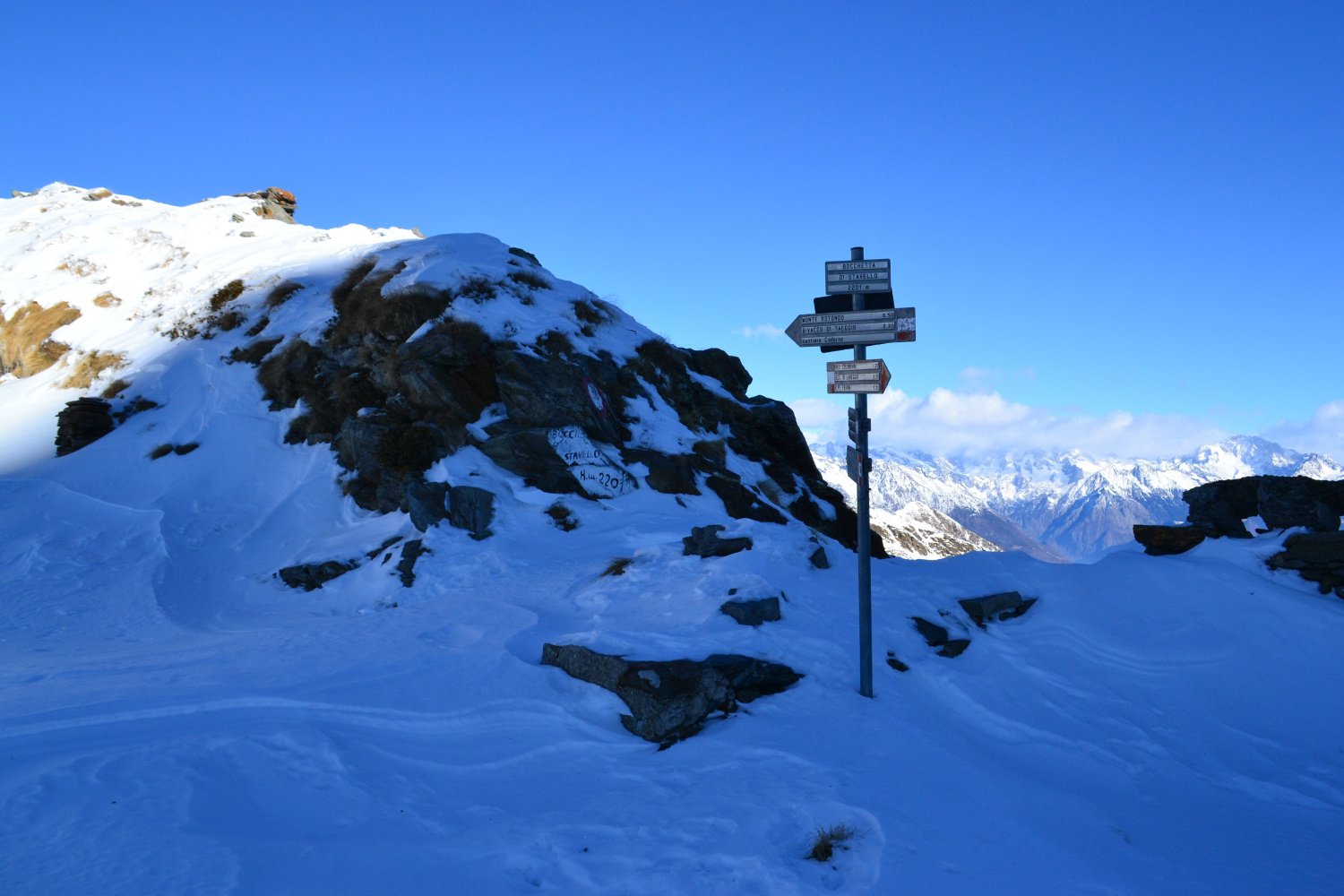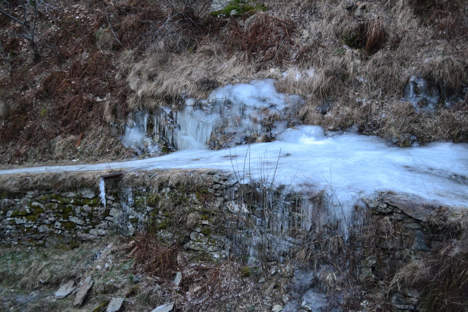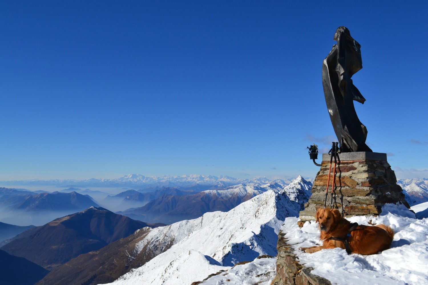Piuttosto lunga la strada della Val Fraina, soprattutto al ritorno, e ghiacciata in più punti, il che costringe a delicati o poco ortodossi passaggi laterali per evitare i vari lastroni. Il Sentiero Cadorna è pulito fino a 1700 m di quota, poi inizia la neve. Racchette lasciate a casa (eventualmente anche utili, ma da spallare per 800 m di dislivello), poco sopra i 2000 m ramponi necessari, nessun passaggio precedente (se non di animali) e bella faticaccia a tracciare su crosta ventata, portante solo parzialmente. Pendii laterali del Monte Colombana al sicuro da eventuali scariche, vista la scarsità di neve. Nell’ultima parte ho evitato il più possibile i tratti di sentiero sotto cresta per ridurre gli sprofondamenti, sfruttando la salita lungo il culmine pelato dal vento. Panorama eccezionale dalla cima.