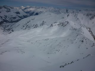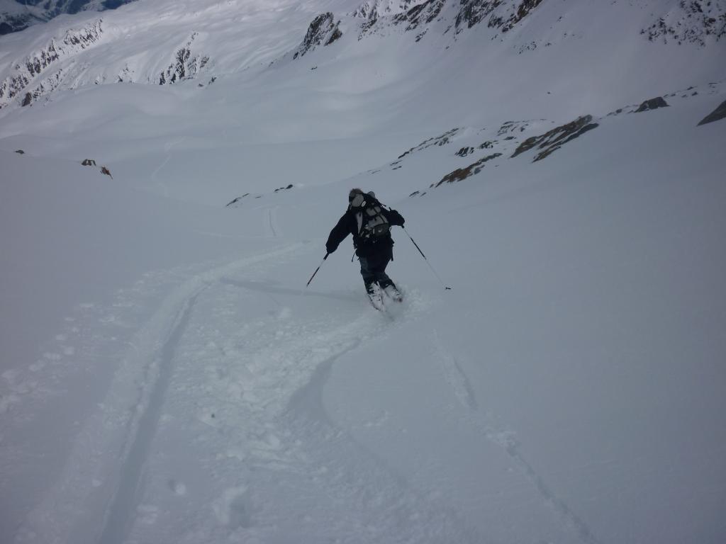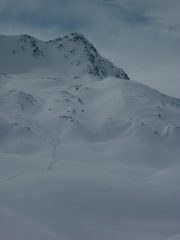 gita con sviluppo notevole(non si arriva mai)ma ne valeva la pena!!i primi 700 mt di dislivello in discesa da sballo con neve polverosa 20/40 su fondo portante, i restanti un po ventata con qualche crosta quà e là,nel finale sentiero super battuto fino realp!in salita battuta da stelliboben 2209 fino in cima!TEMPO:cielo velato con ballido sole fino le 12 poi in netto miglioramento giusto per la discesa.
