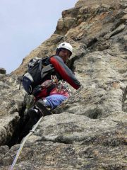 bella via, mai difficile con una buona chiodatura….i primi due tiri fatti con i guanti, un freddo impensabile!!! (la notte prima un po’ di nevischio al rifugio).. salita con Simona