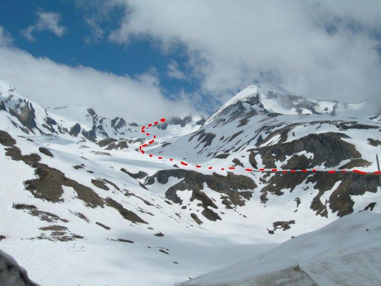 Entrati nell’ampio vallone, seguirlo tutto (in direzione NO), passando di fianco al Lac Sans Fond (2456 m) e raggiungere il Passage des tre Moines (2812).