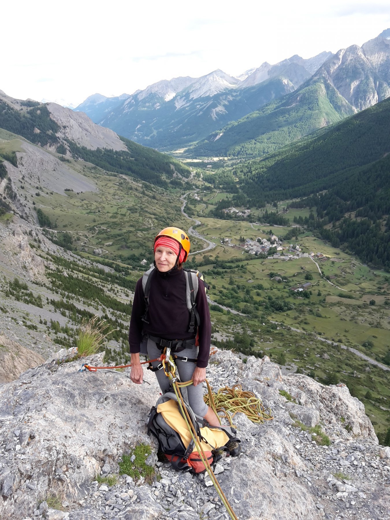 Bello sperone e bella via, mai difficile, ma qualcosa non mi torna nella descrizione, a partire dai tiri centrali, che mi sono parsi i più duri: specialmente il quarto, muro verticale e delicato traverso prima del terrazzamento alla base della facile cresta ed anche gli ultimi due brevi tiri: un camino e per finire un bel muretto verticale. Probabilmente ho sbagliato linea, ma non ho davvero capito dove. Comunque poco male, la via è molto piacevole e ben chiodata. Le soste sono tutte da allestire. Sentiero di rientro delicato (sabbione ripido e scivoloso con le scarpe da avvicinamento), potrebbero essere utili gli scarponi rigidi.