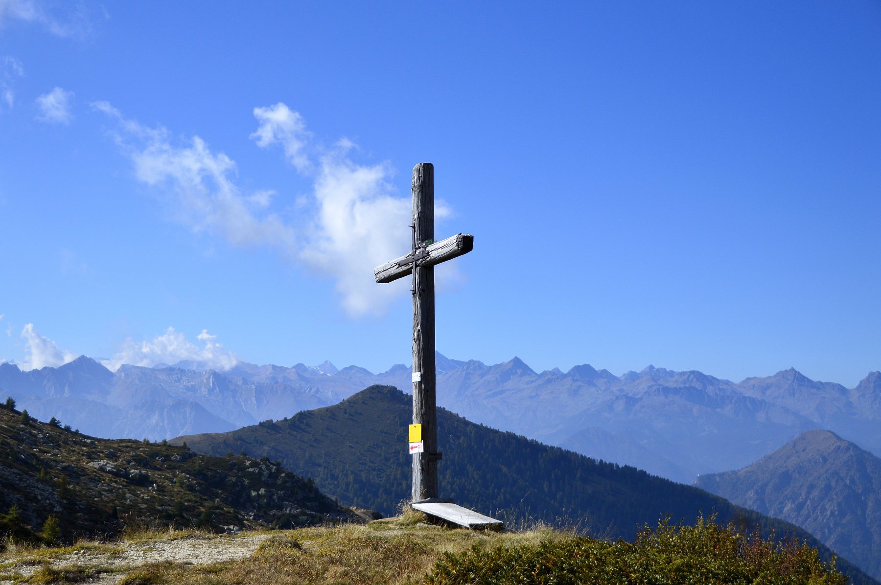 Arrivato all’alpeggio Giassit appena sotto il colle fra ampi pascoli (qui il sentiero diventa precario, seguire le frecce gialle) e poi breve risalita fra rododendri e mirtilli fino all’aperto e panoramico col Giassit caratterizzato da un’enorme croce lignea.
