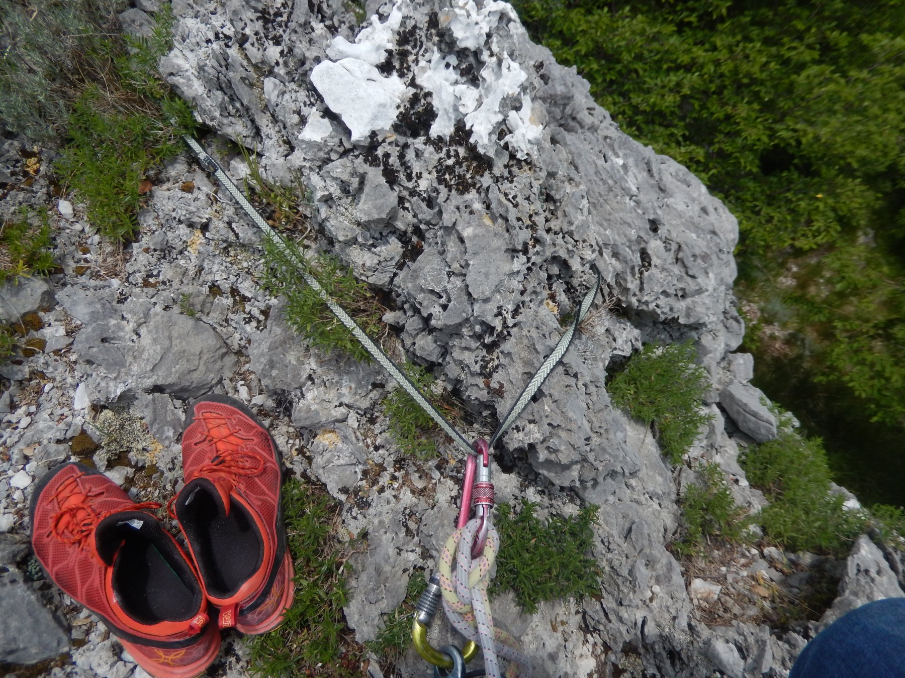 Via assolutamente da non sottovalutare, tiri sempre continui e tecnici. Una via a torto poco frequentata, che meriterebbe maggiore considerazione! Roccia bellissima quasi ovunque. Non servono protezioni mobili al seguito, necessari molti rinvii per il tiro chiave, utili, ma non indispensabili le staffe. Discesa: dall’uscita della via, si scende il canale erboso a dx guardando la parete, albero con fiocco bianco per eventuale doppia. si costeggia la parete fino a reperire la sosta di orto botanico. Prima doppia sulla via. Seconda doppia fino ad arrivare ad una sosta in una nicchia (fuori via). Terza doppia completamente nel vuoto fino alla sosta di orto botanico. Quarta doppia sempre su orto botanico alla fine delle corde fisse. Ultima doppia seguendo le corde fisse.