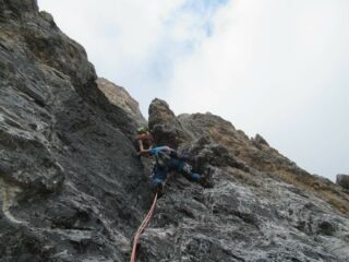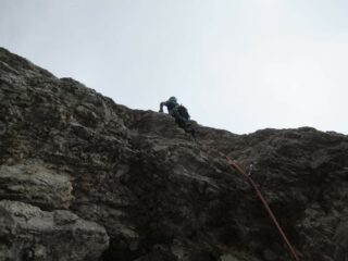 Bella via su ottima roccia, salvo brevi tratti. Chiodatura essenziale, ma sicura.
