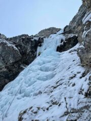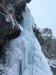 Condizioni buone, avvicinamento con neve fino alle caviglie e sul pendio finale fino alle ginocchia. Salito la cascata sotto una copiosa nevicata, bella giornata con Edo, buona la prima!