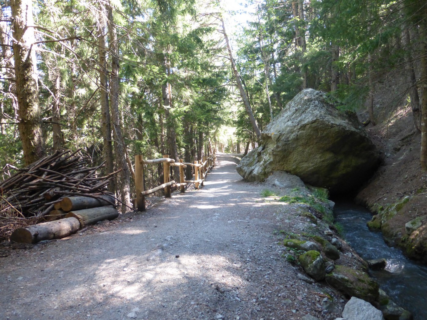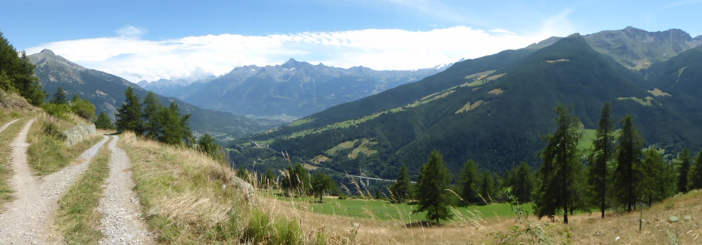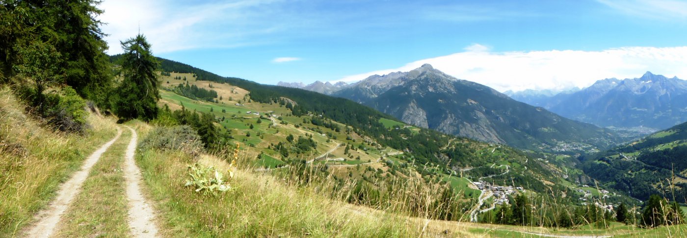 da qui su ruscello fino alla fraz. Moulin poi su asfalto fino a Gignod e poi sempre su asfalto fino alla fraz. Planet poi ancora avanti a dx per fraz. Cherietes e si sale fino al Ru Neuf da quì a dx si arriva fino a Etroubles su bel sentiero che costeggia il ruscello, si sbuca vicino al cimitero e si continua su bello sterrato fino al campeggio di Flassin, risalire a dx fino alla ss.27 salire a Prailles e dopo l’ultima casa si prende la carrareccia per il vallone del Menouve dopo 3 km circa deviare a dx si ridiscende un pò fino al ponticello e attraversato lo stesso si sale al Ru du Menouve poi tutto in piano si arriva sopra Allein e si continua sul Ru fin quando inizia a scendere su tratto sconesso e un pò più ripido fino a Daillon a sx si continua su sterrato fino a Doues poi si prende la strada che costeggia il campo sportivo e su strada inizialmente asfaltata poi continua su poderale fino al ponte di Valpelline, rientro a Roisan e poi Closellinaz.