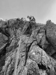 - L15 5a 20 m. Torrione finale con belle fessure e lame.