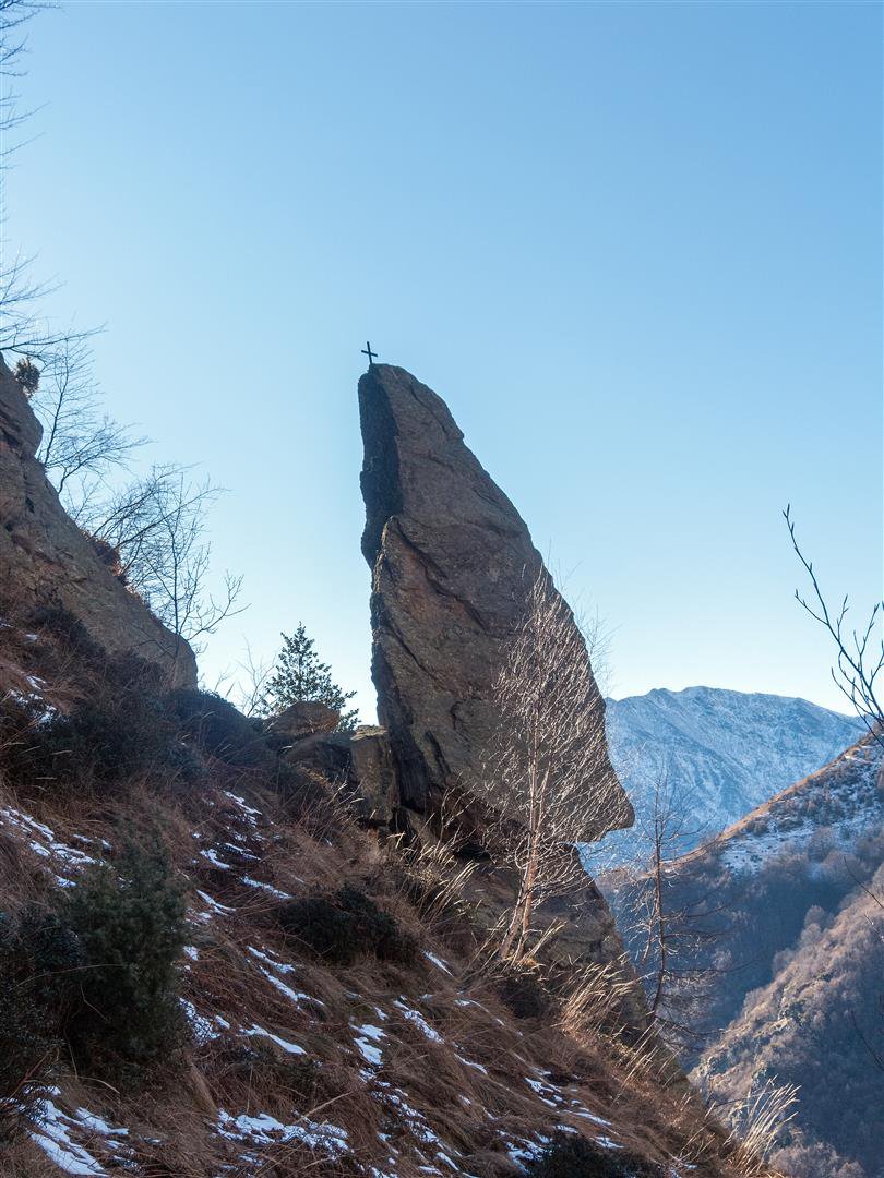 Dopo aver attraversato il torrente che passa alla base dei contrafforti meridionali del Torrione Rubinella, si prosegue lungo una serie di tornanti fino ad un’evidente sentiero che parte in piano a destra (in corrispondenza dell’ottavo tornante).