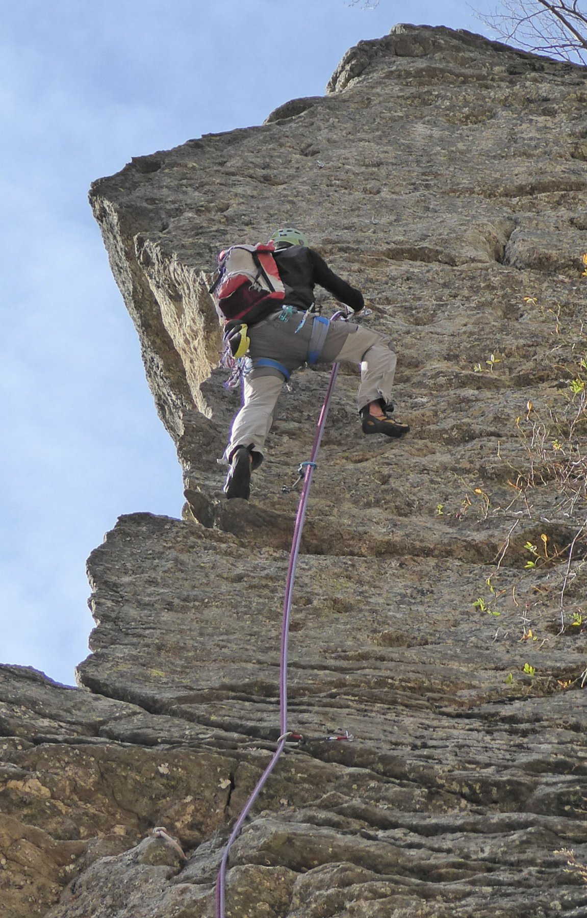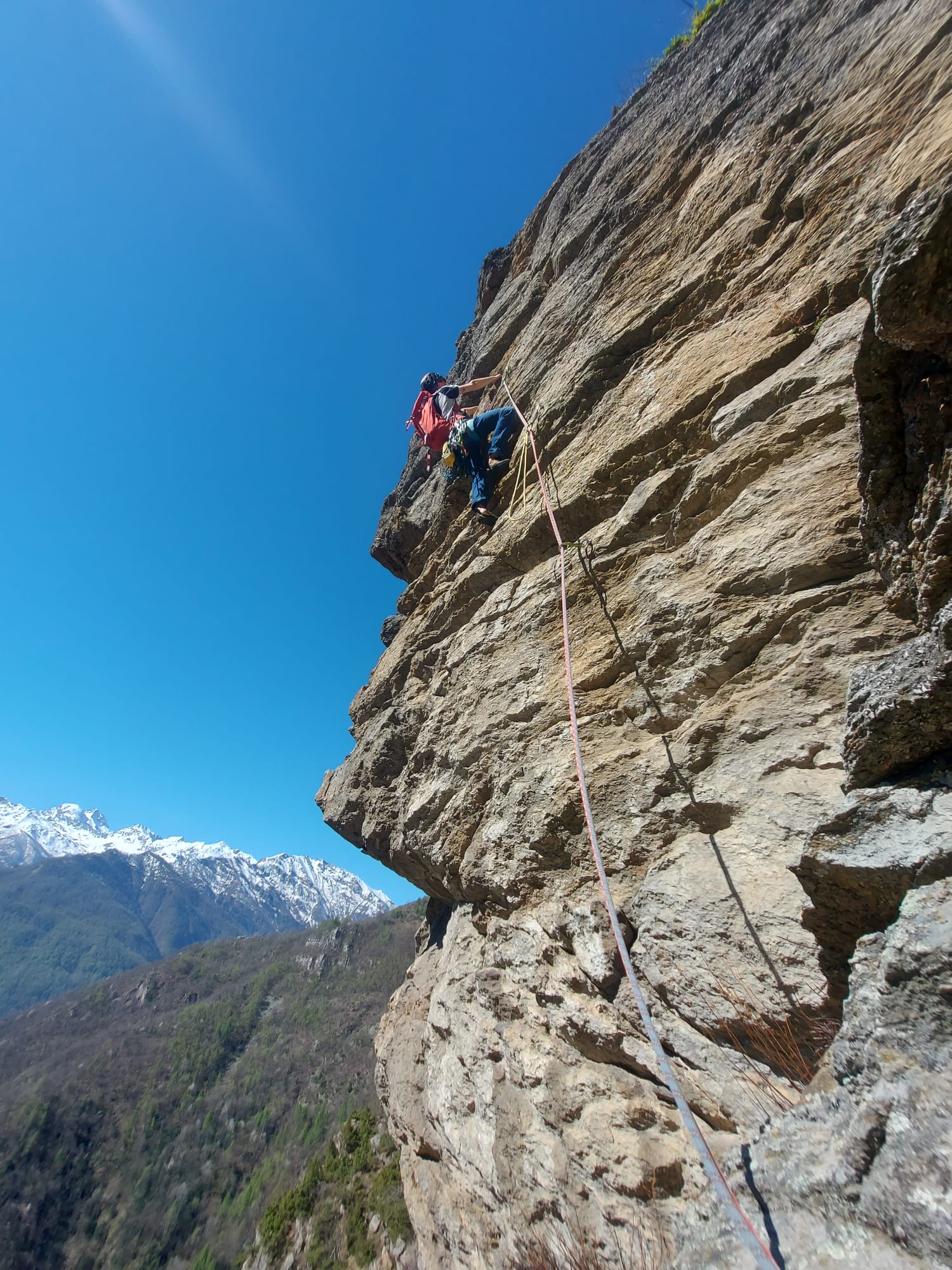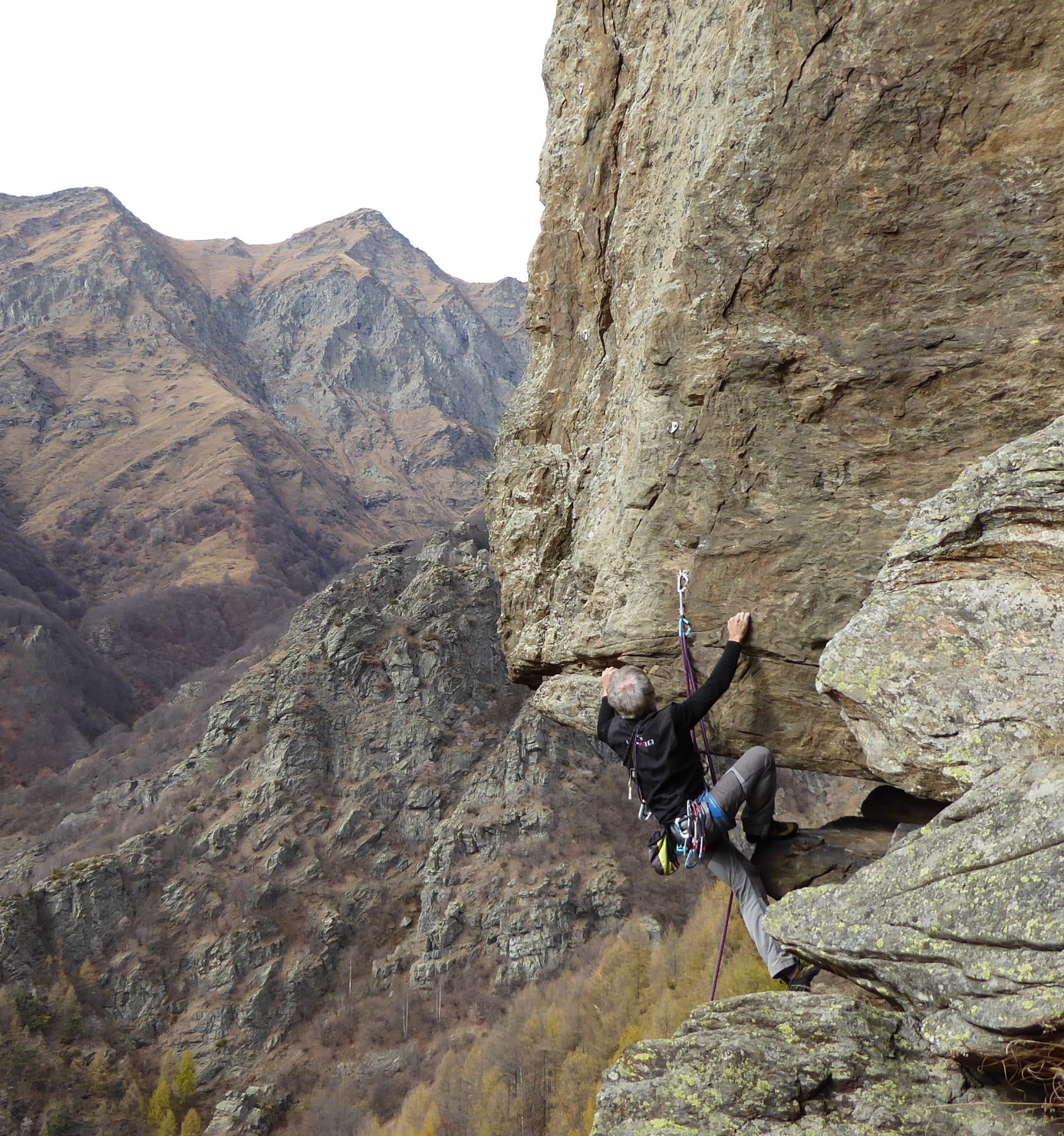 - L2) Risalire a destra un tratto strapiombante con buoni appigli (5a)