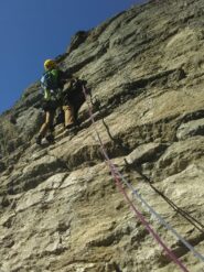 - L3) Continuare a sinistra lungo un bel muro verticale (6a+) e, dopo un breve tratto in piano,raggiungere la sosta sulla destra.