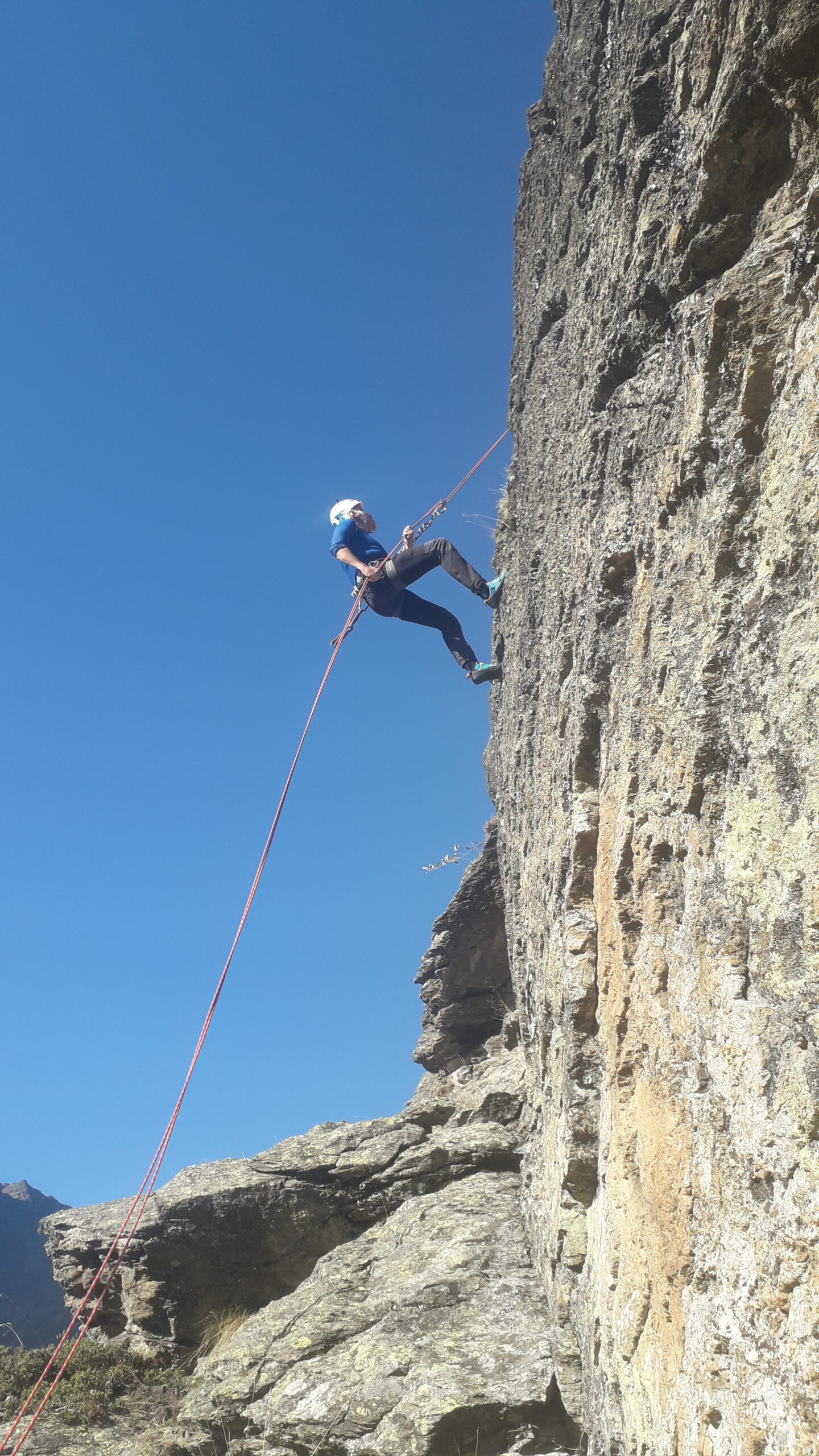 Memori del ravano a scendere lato nord ovest per tornare alla base, disponendo di una mezza da 60, ci siamo fatti due conti e arrivati alla conclusione che scendere in doppia era la cosa migliore che si potesse fare. Come in effetti abbiam fatto.