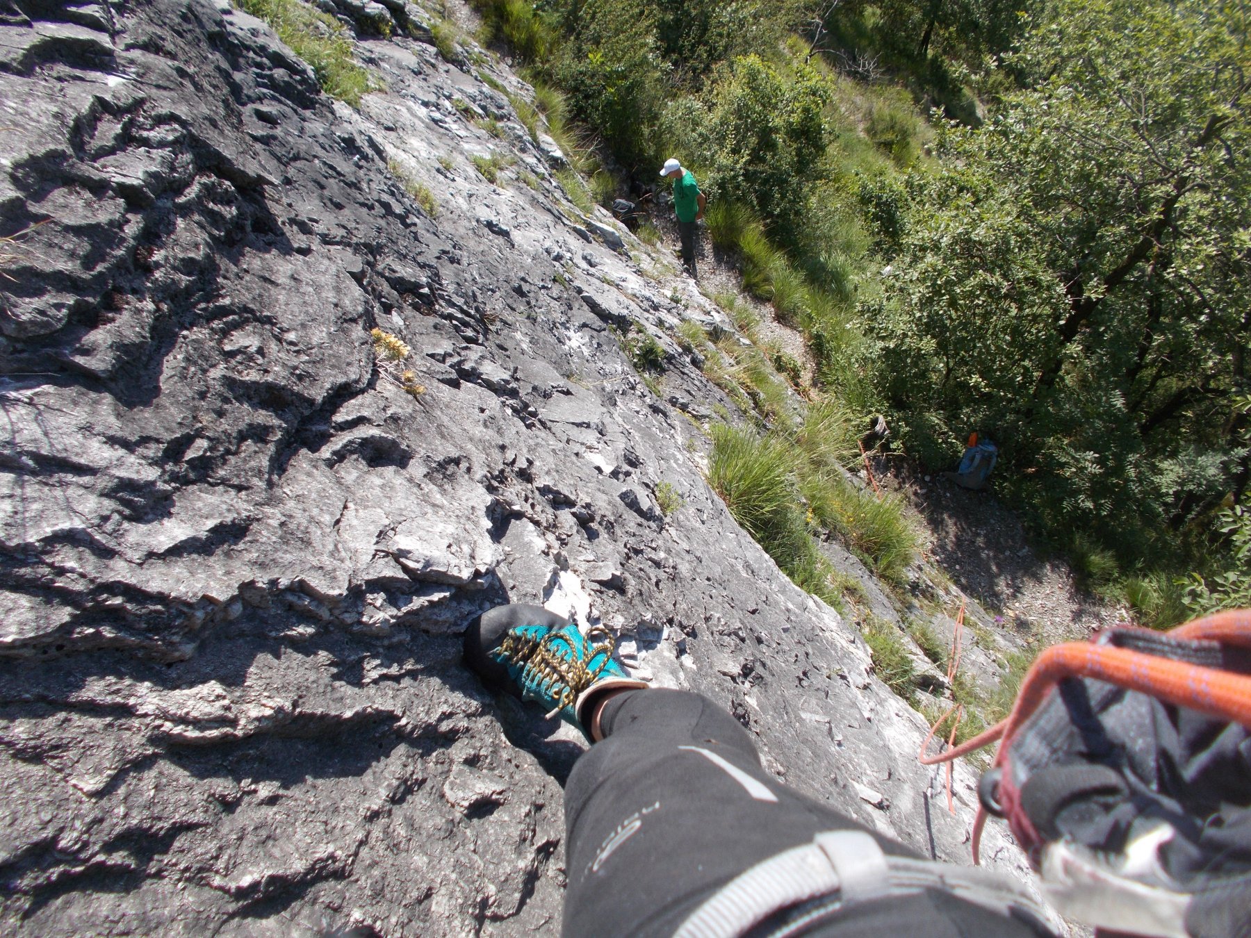 Proseguire a piedi per la strada sterrata alla destra dello spiazzo e al secondo tornante proseguire per una traccia ripida che conduce alla falesia. Il sentiero dapprima ripido si addolcisce nella parte finale facendovi arrivare al settore Placca degli Scorpioni.