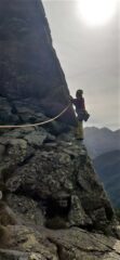 Divertente vietta di stampo alpinistico con abbondante spittatura; terreno ideale per principianti, roccia solida ed idonea per imparare ad utilizzare protezioni veloci; tiri corti e soste comode, una mezza da 60 m. doppiata è più che sufficiente; ad evitare attriti fastidiosi è conveniente fare tutte le soste; il tiro più impegnativo a ns. avviso è il primo.