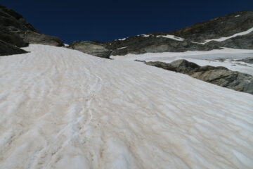 Ridisceso al colle e lungo l’itinerario che sale dal Deffeyes raggiunto il Rutor.