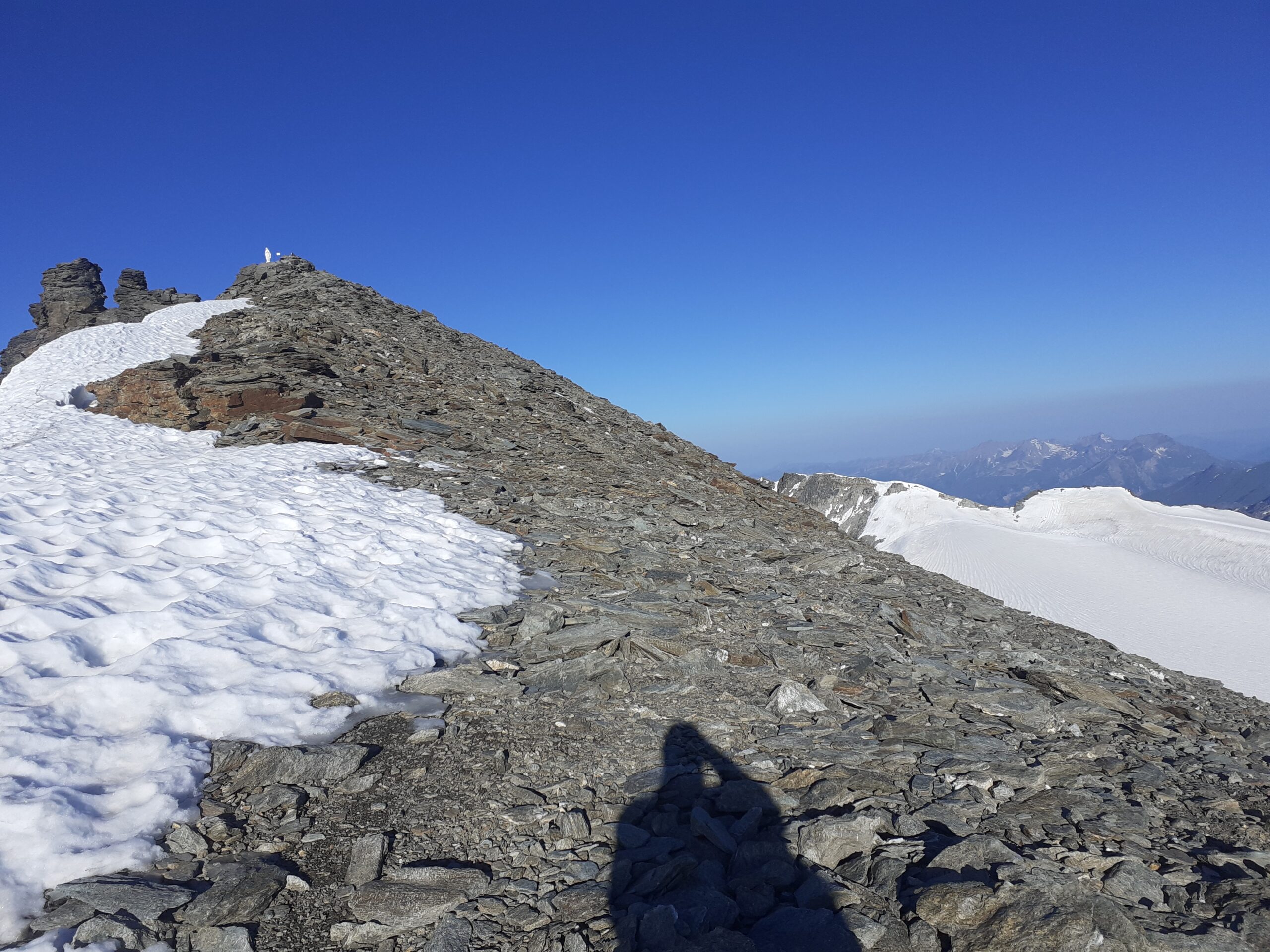 La puntavo da anni è finalmente è arrivata in una giornata splendida. Tutto facile ad eccezione del canale che porta in cresta dove però hai molte possibilità di scelta. Io salito verso la vecchia capanna su neve e detriti. Splendida la vista dalla cima..