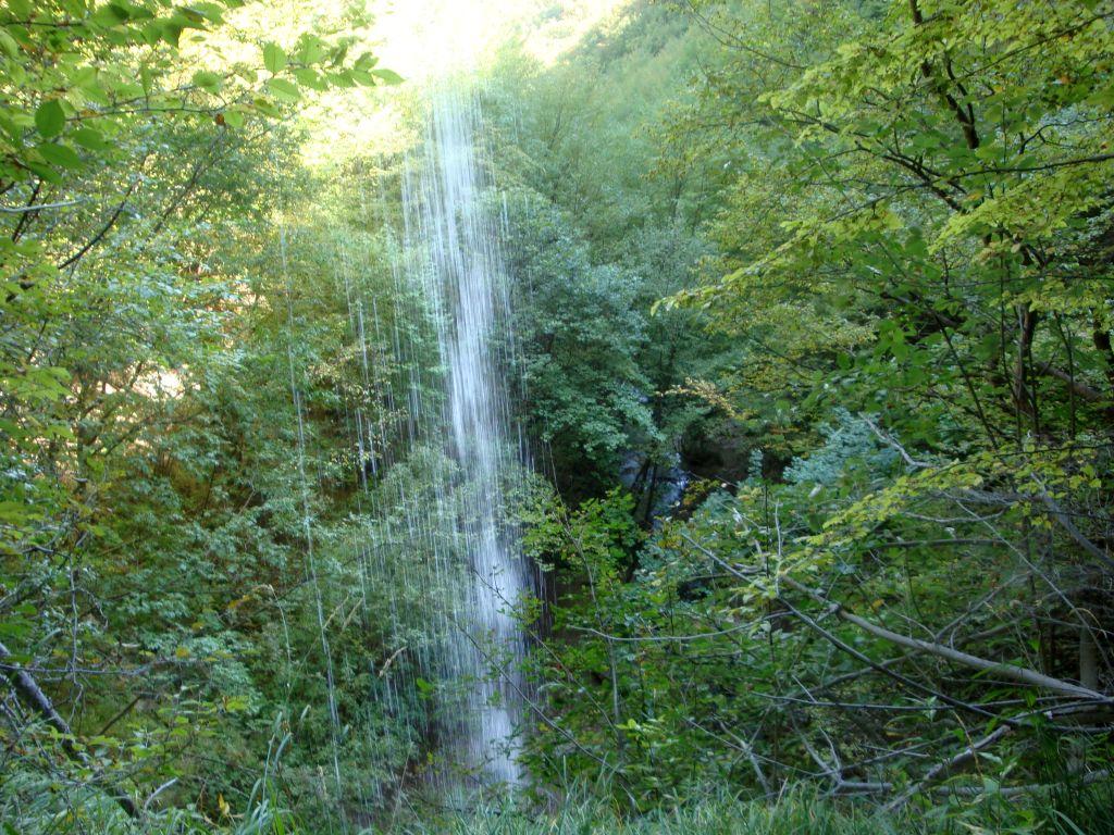 Dopo un breve ripido sentiero si arriva sopra la Cascata,si attraversa il torrente e si prosegue per il sentiero F5 in falsopiano fino alla Valle delle Monache dove si incontra un area pic nic e subito dopo il Rifugio ANA Guardiagrele.