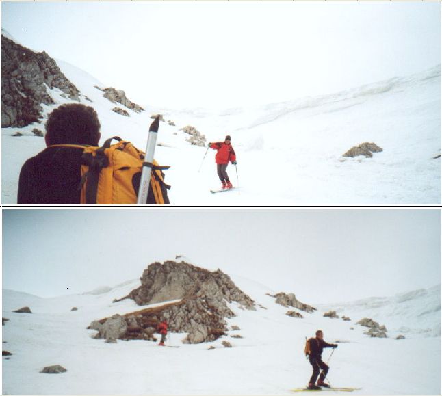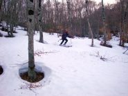 Discesa nel Canale S.Nicola per poi piegare a sx e ricongiungersi con l’itinerario di salita alla radura di q.1650.