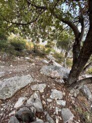 Possibile discesa a piedi ma impegnativa e lunga per le creste di Punta Su Mulone e Cuccuru Mannu (1,30 ore sino alla strada sterrata, poi ulteriore 0,30 ore al paese di Baunei … ma la macchina è a Pedra Longa!)