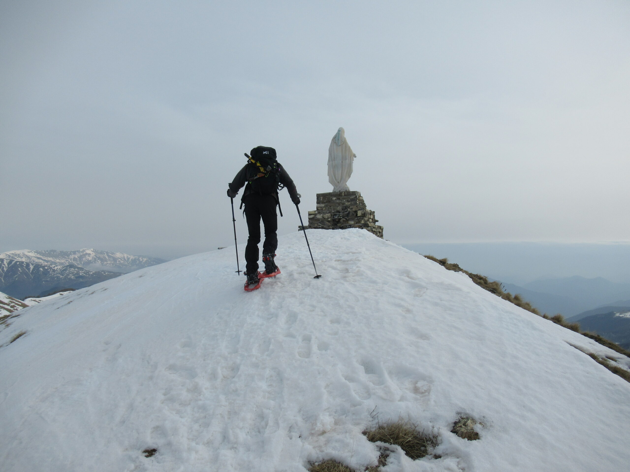 Nuovamente in quel di Monesi con Michele, partiamo con ciaspole ai piedi e su neve primaverile saliamo come da itinerario per raggiungere il crinale a sx del Passo Garlenda e su neve abbastanza ghiacciata, saliamo sempre di ciaspole in vetta al Monte Fronte’ con un po’ di vento freddo e le velature per tutto il giorno. Ritornati al colle, proseguiamo per l’ondulato crinale su crosta portante lavorata dal vento fino al Saccarello, per poi tornare al Redentore e dopo la pausa pranzo al riparo, torniamo indietro fino al Rifugio La Terza e da li scendiamo velocemente x la valletta passando dai vecchi impianti e lasciato il nuovo, a scendere a sx per raggiungere la stradina battuta dai passaggi e poi giu’ tra questa e tagli tutta su neve primaverile. Consigliata e Buona Montagna a tutti.