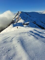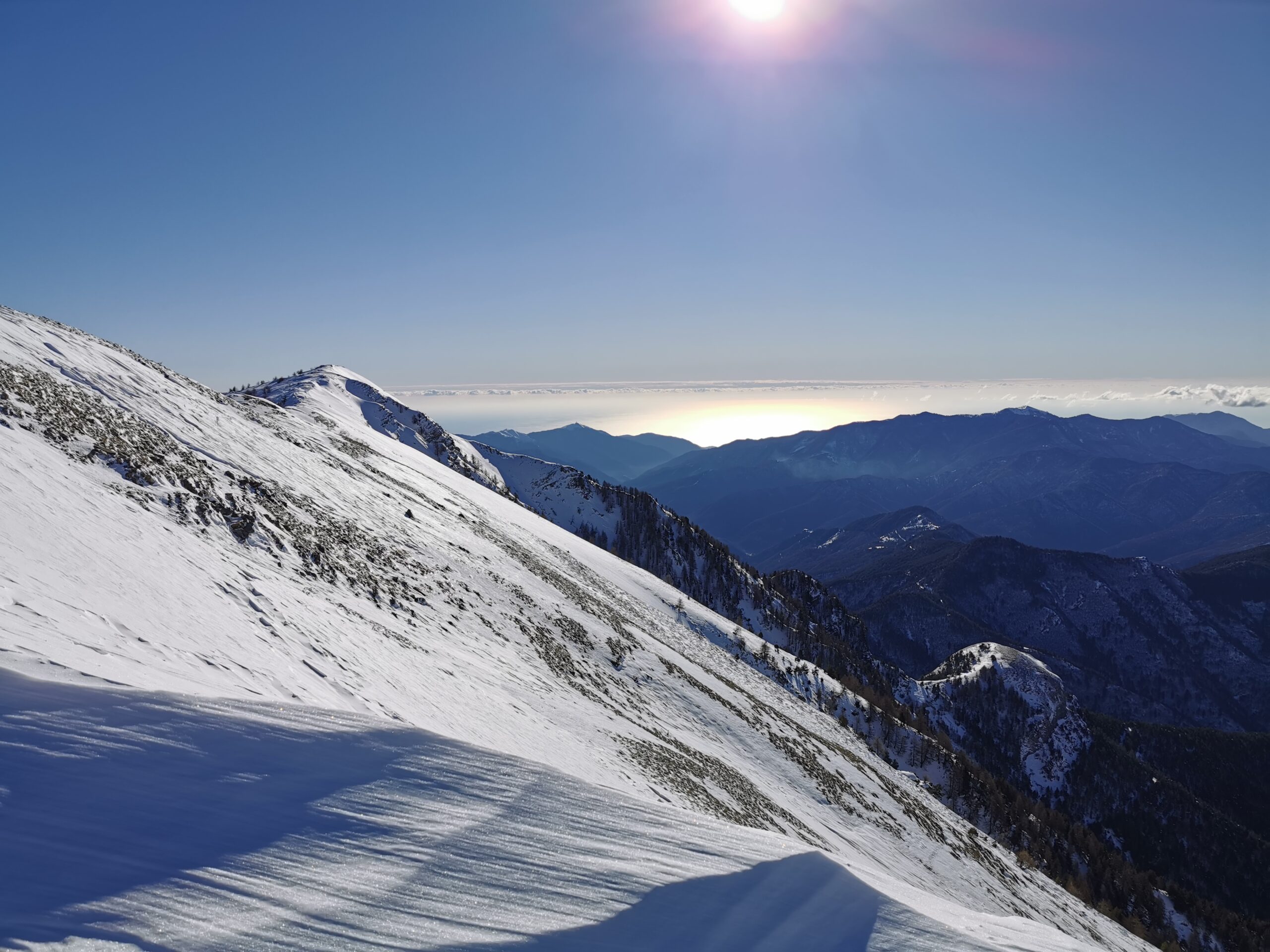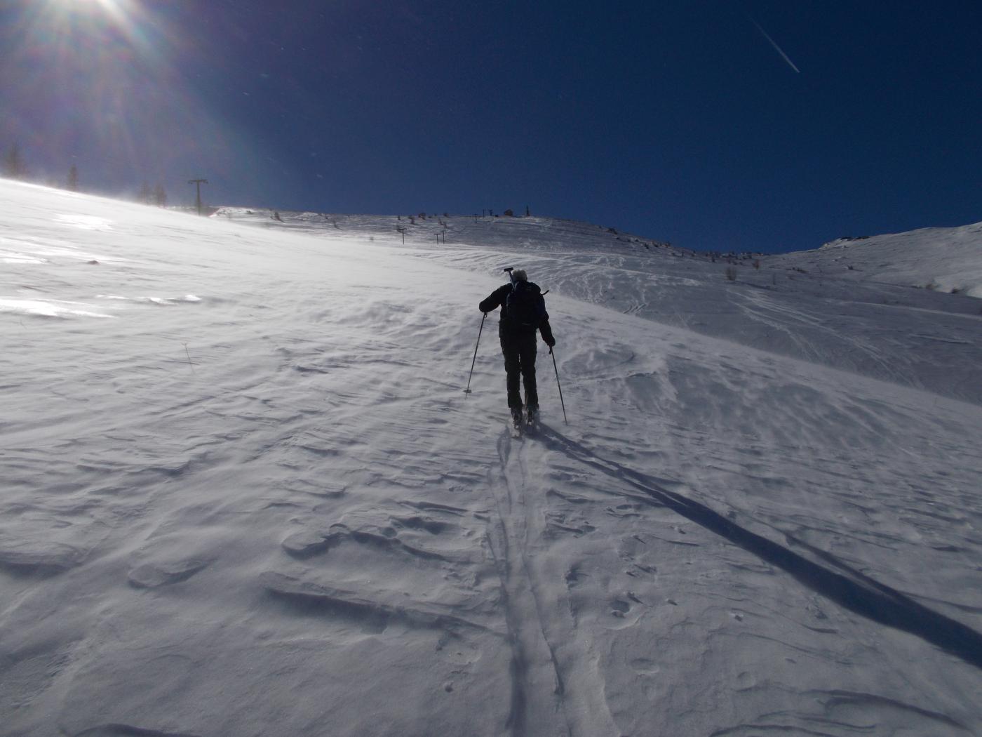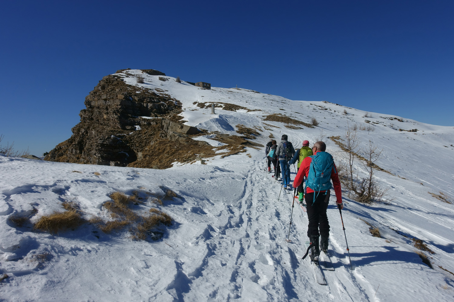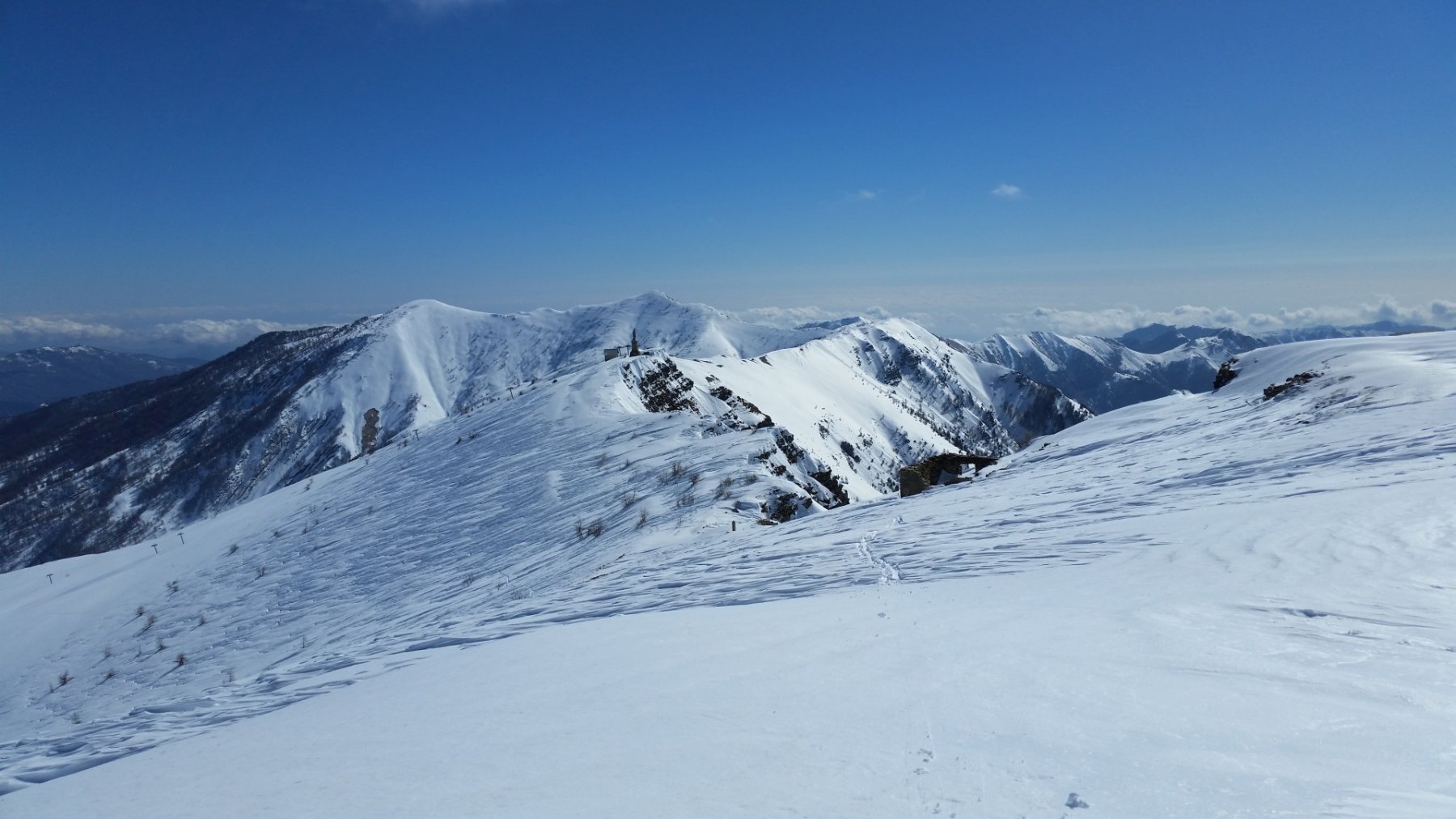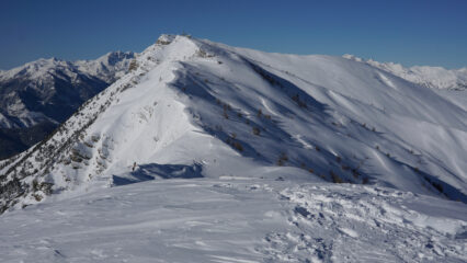 Seguire gli ampi pendii sino al Redentore, quindi a destra per il crinale al Monte Saccarello.