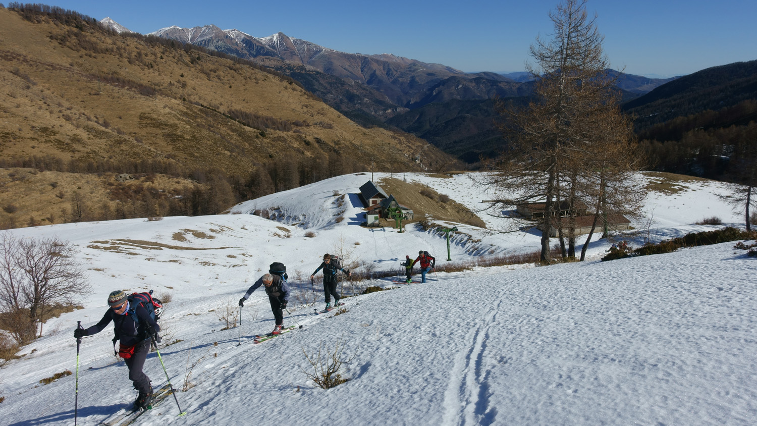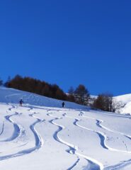 Dall’abitato di Mònesi seguire il tracciato della strada per il Colle dei Signori che si inoltra nel bosco (con eventuali tagli dei tornanti) fino alla partenza della sciovia Plateau, che si oltrepassa lasciando sulla propria sinistra i pali dell’impianto.