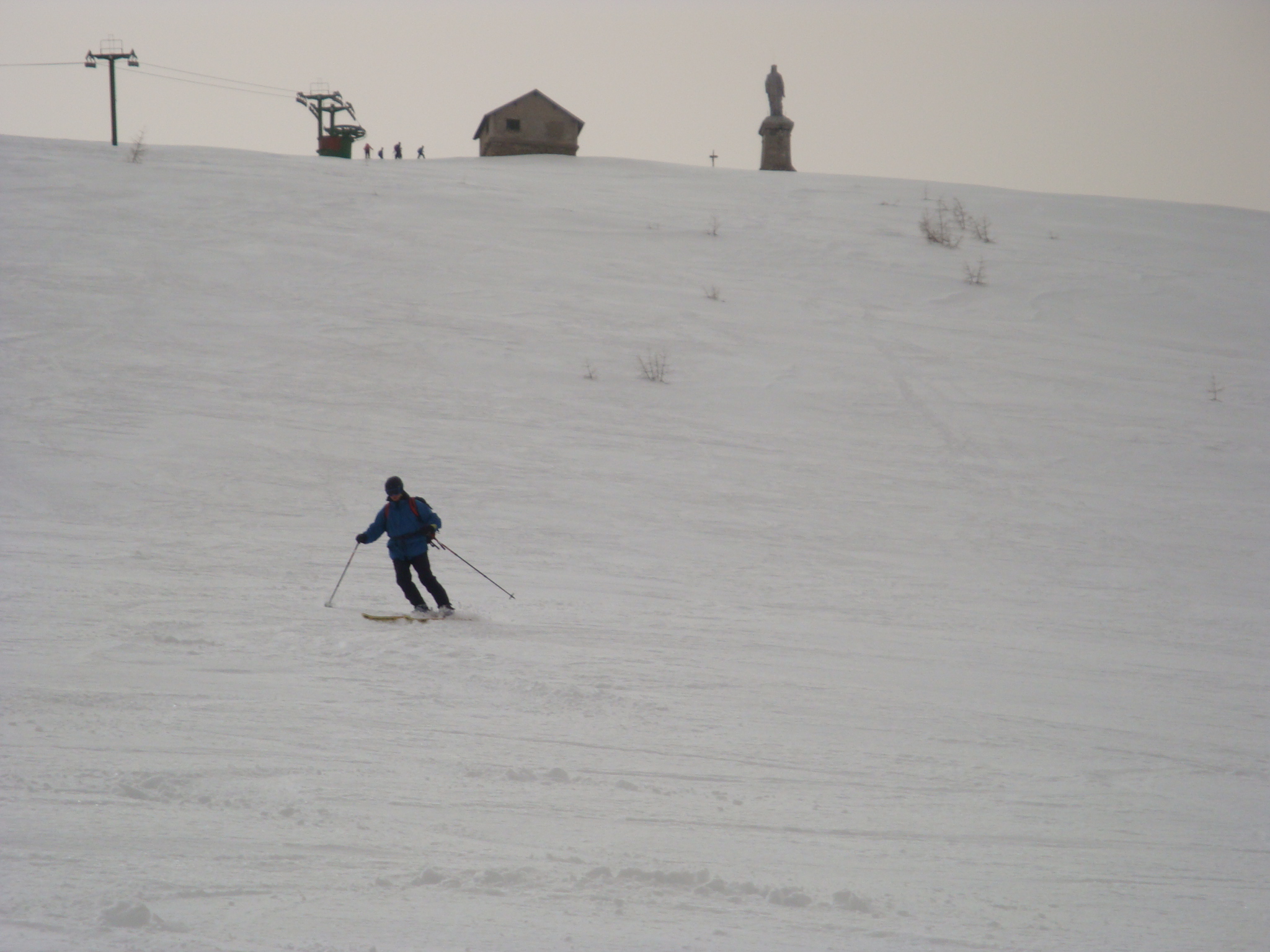Discesa divertente e scorrevole su neve trasformata seguendo il tracciato delle vecchie piste. Il meteo è stato clemente per tutta la mattinata ed il sole ha fatto capolino verso mezzogiorno.