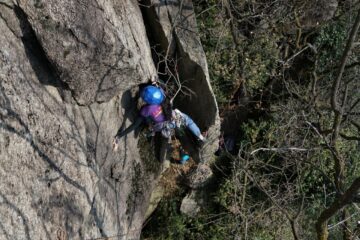 Una falesia del tutto nuova, roccia davvero bella e di tiri ce n’è per tutti. Facili per chi vuole approcciarsi all’arrampicata Trad per poi buttarsi su qualcosa di più tecnico e impegnativo. Buon divertimento