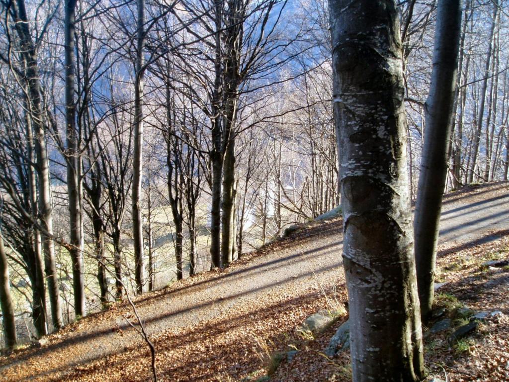 Neve a chiazze dall’alpe Pianou sino ai laghi. A volte si può evitare ma il terreno fradicio dallo scioglimento della neve è otremodo scivoloso.