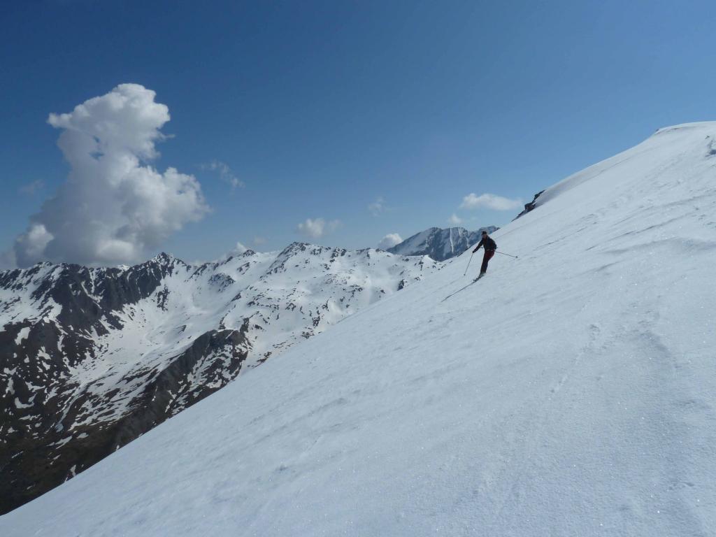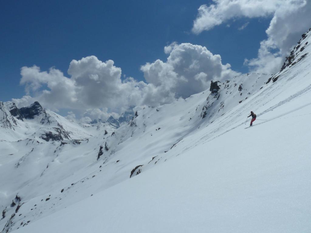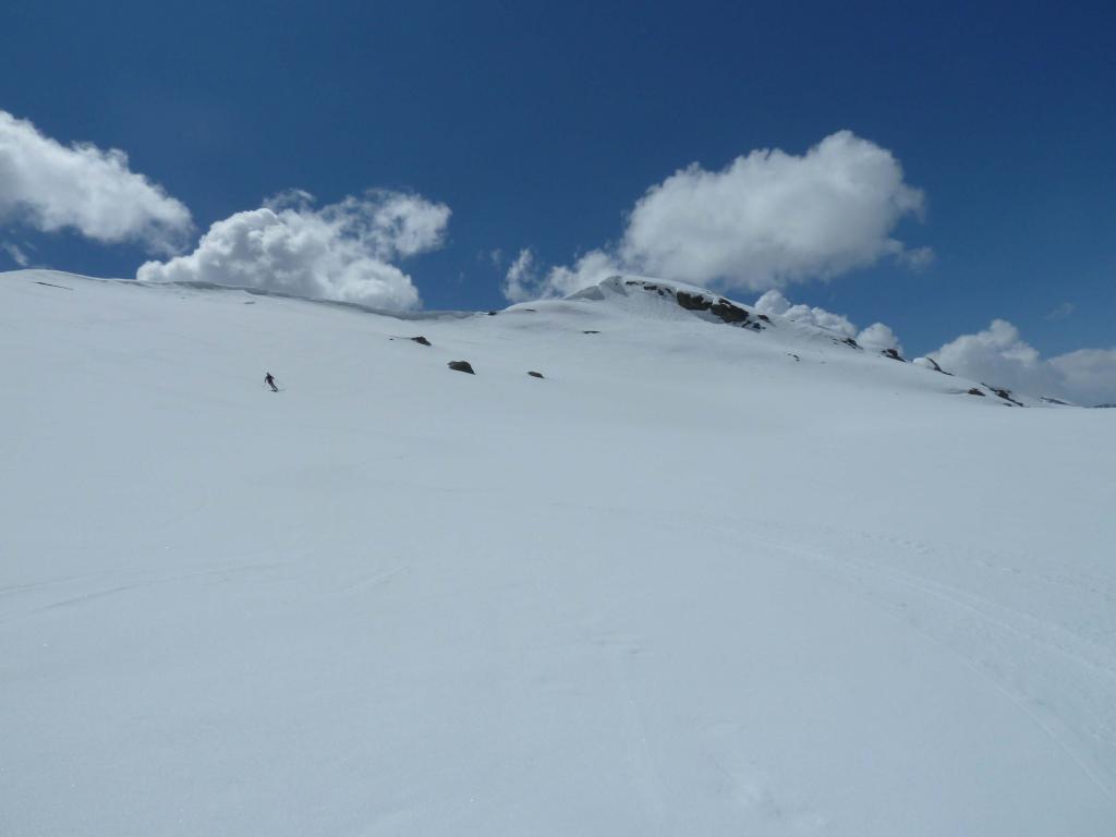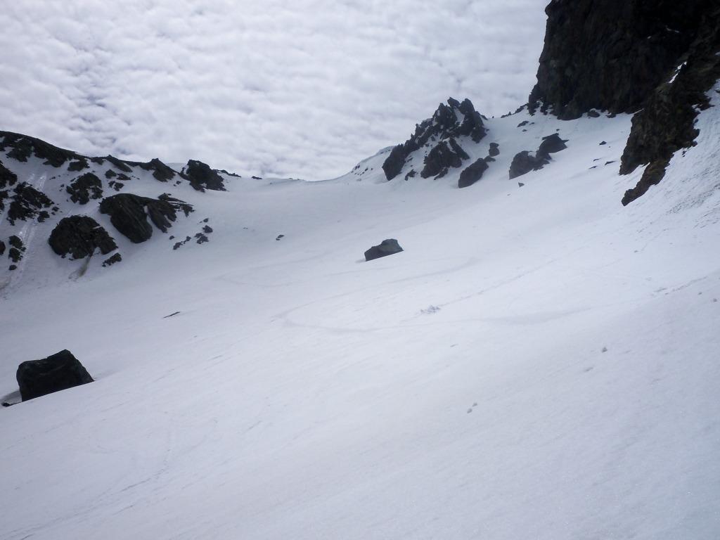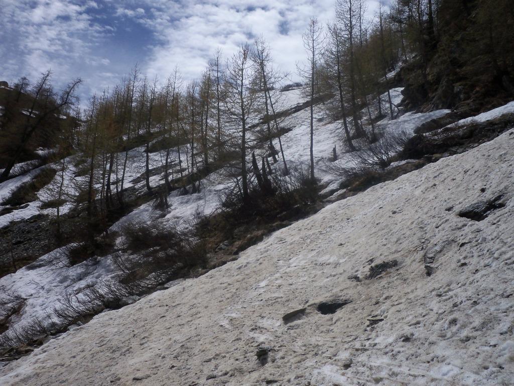 Quindi scendere verso il vallone dell’Agnello nell’ampio vallone Clausis, che nome non a caso si restringe a gorgia nella parte più bassa, dove si sfruttano eventuali residui di valanghe.