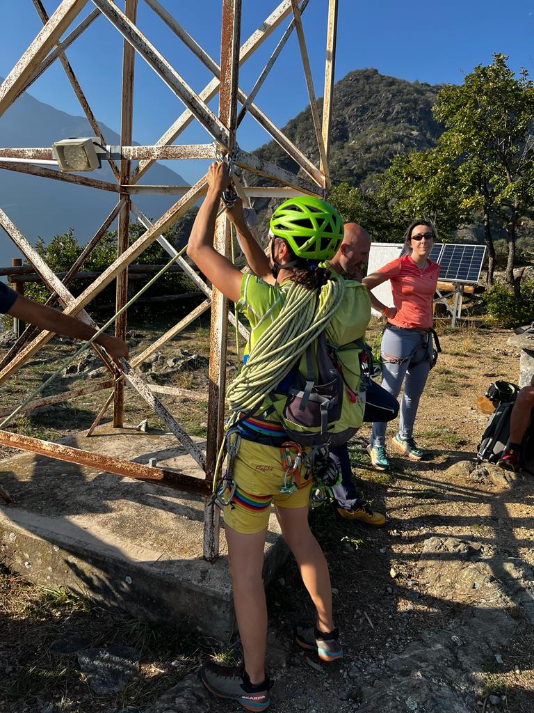 Per superare in sicurezza l’ultimo risalto roccioso appena sotto alla Croce sono state collocate una sosta alla base e una proprio sulla Croce.
