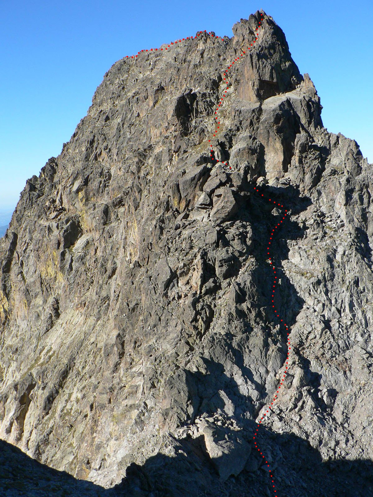 La cresta è orizzontale ma aerea con numerosi gendarmi.