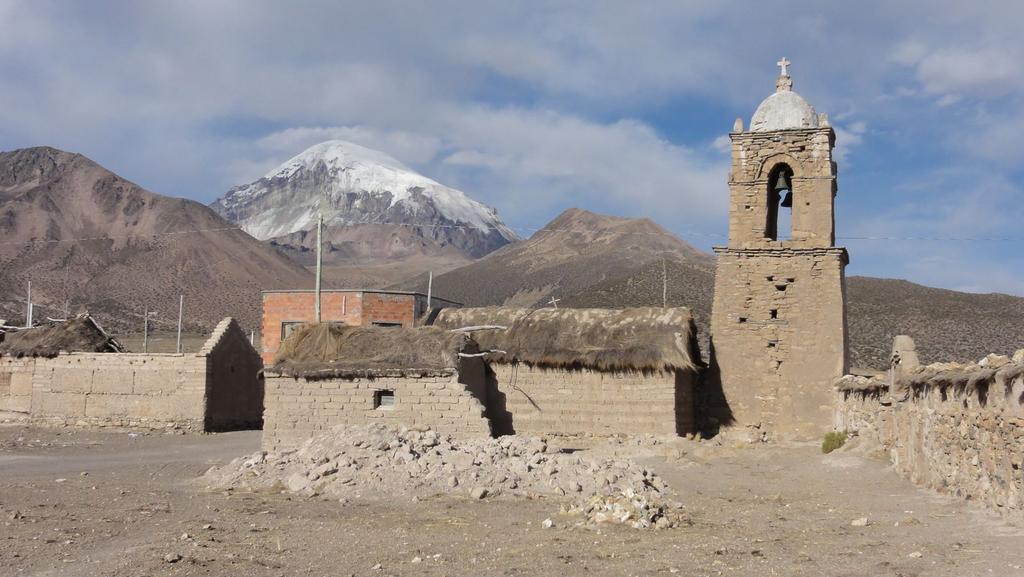 Da Pueblo Sajama si segue una strada sterrata che va a sinistra in direzione delle acque termali, fino ad un bivio, dove si segue la diramazione di destra (è la via di accesso verso il Campo Base del Sajama) fino al punto dove termina e si trasforma in sentiero. Si prosegue lungo il sentiero che sale sulla sinistra, risalendo pendii erbosi di moderata inclinazione, raggiungendo un’ampia spianata dove si gode di una splendida visuale sull’imponente versante Ovest del Sajama.