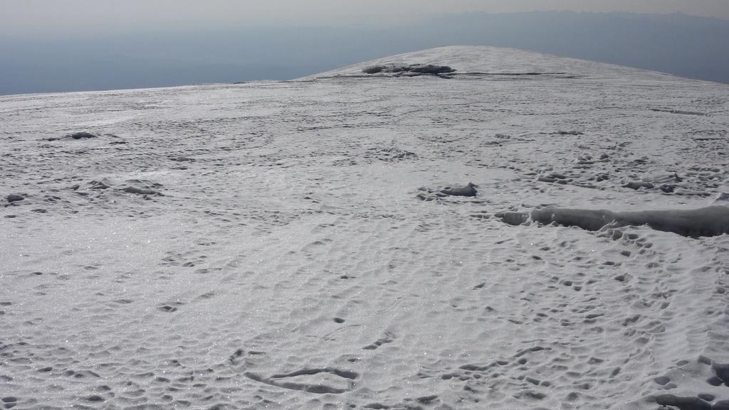 Superato questa specie di labirinto, si esce sull’ampio crestone nevoso NO, che si segue tenendosi al centro, con pendii inclinati sui 35-40° guadagnando rapidamente quota. Si sale direttamente o con alcune diagonali, aggirando qualche crepaccio, lungo i pendii sommitali, fino a raggiungere il pianeggiante e immenso calottone che costituisce la vetta di questa grande montagna !