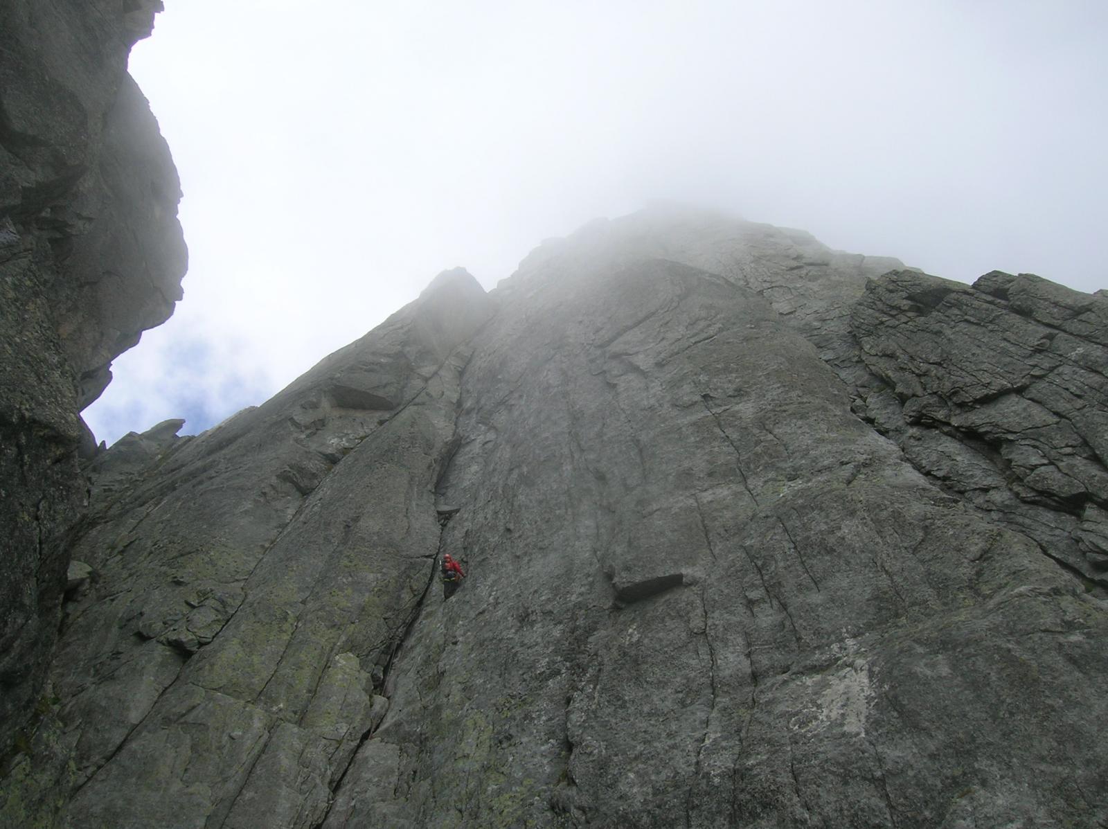 Difficoltà, secondo i Remy 4+ 5 4+ 4 (belli e per nulla banali) - -10 tiro: non traversare dritti in direzione della torre principale, ma alzarsi in diagonale sulla sinistra, fino a una comoda cengia (spit) che permette di attraversare il canale. Qui abbiamo sbagliato strada, prendendo il diedro sulla destra (chiodo alla base) percorso da una via tradizionale, che propone tre lunghezze tra il V e il VI. Consigliamo ai ripetitori di cercare pazientemente la sosta a spit della via, che non si trova nella base del canale, ma più in alto e più a sinistra del diedro molto evidente da noi percorso (l’ultimo a destra prima dello spigolo) in quanto troveranno roccia più bella e arrampicata di sicura soddisfazione.
