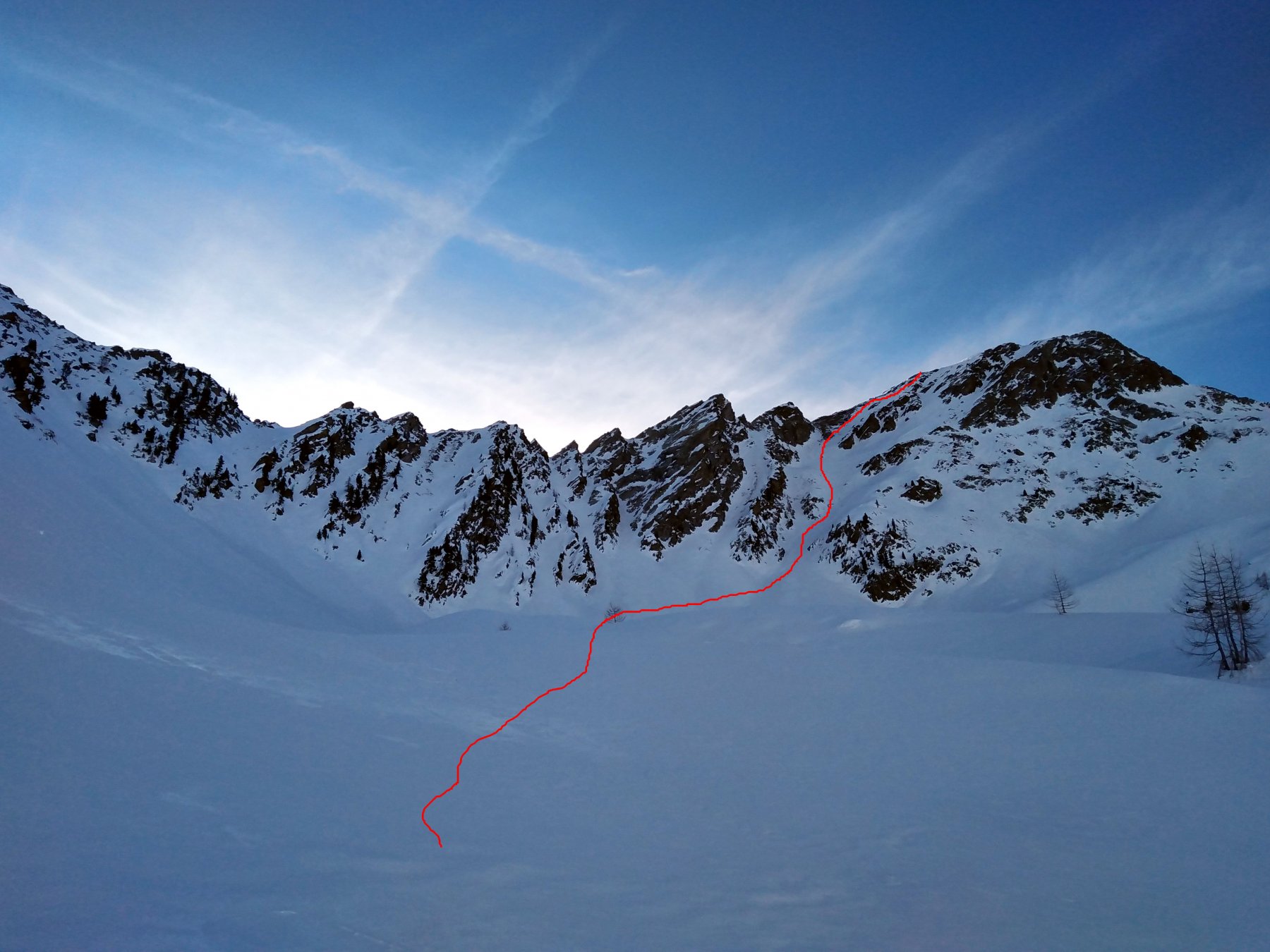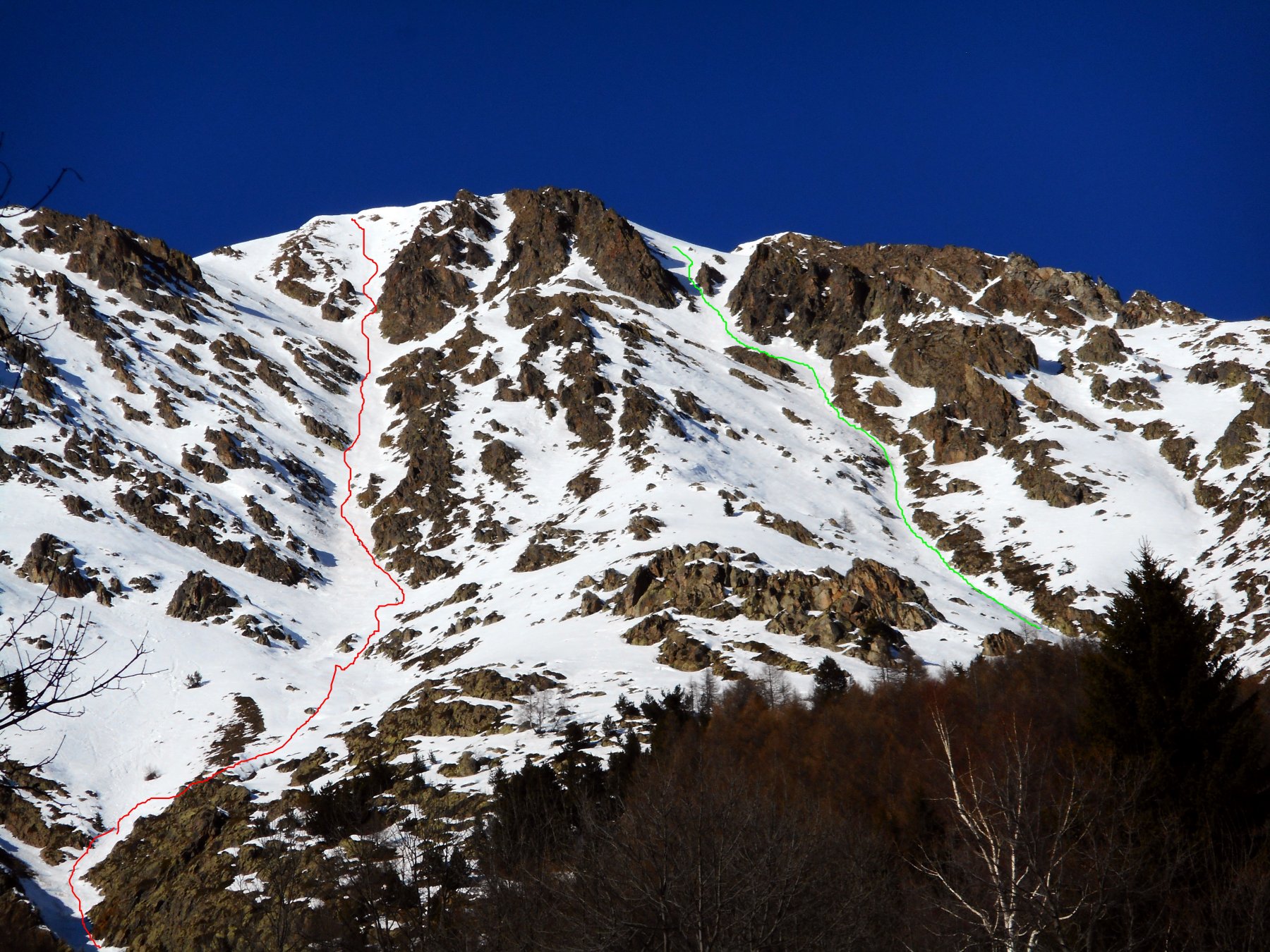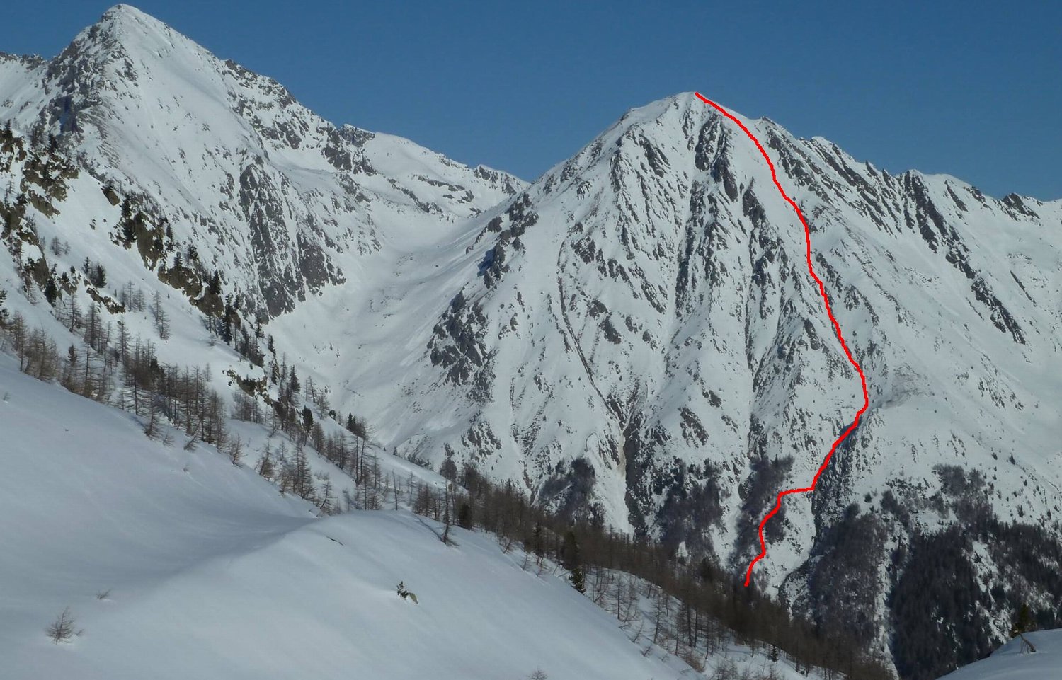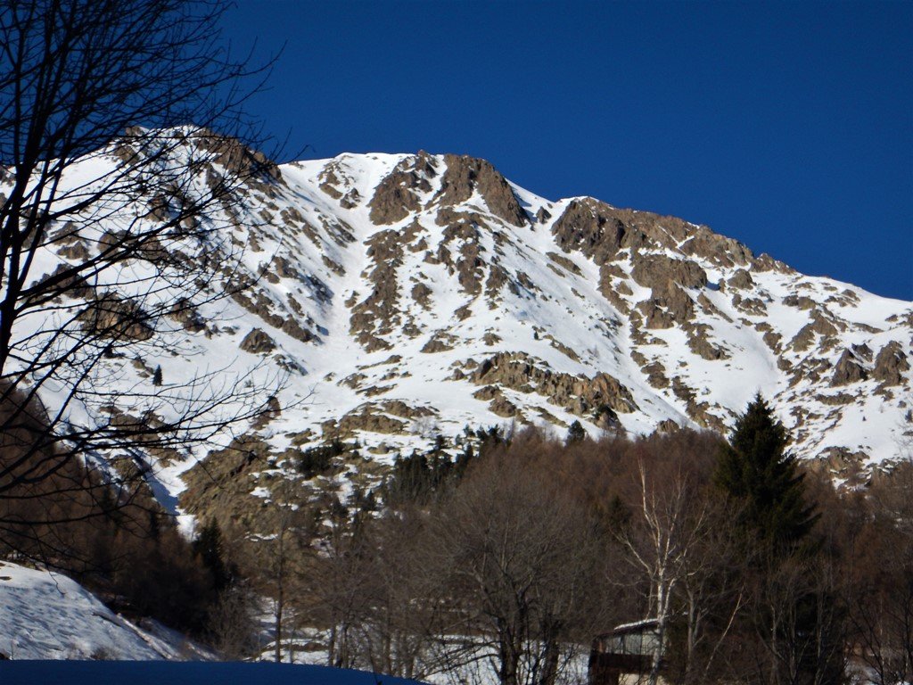interessante montagna che offre diverse possibilità di discese. Il presente itinerario percorre l'evidente e rettilineo canalone che si origina immediatamente a monte dell'abitato della tranquilla e solare fraz. San Bernolfo (ben visibile dal basso)