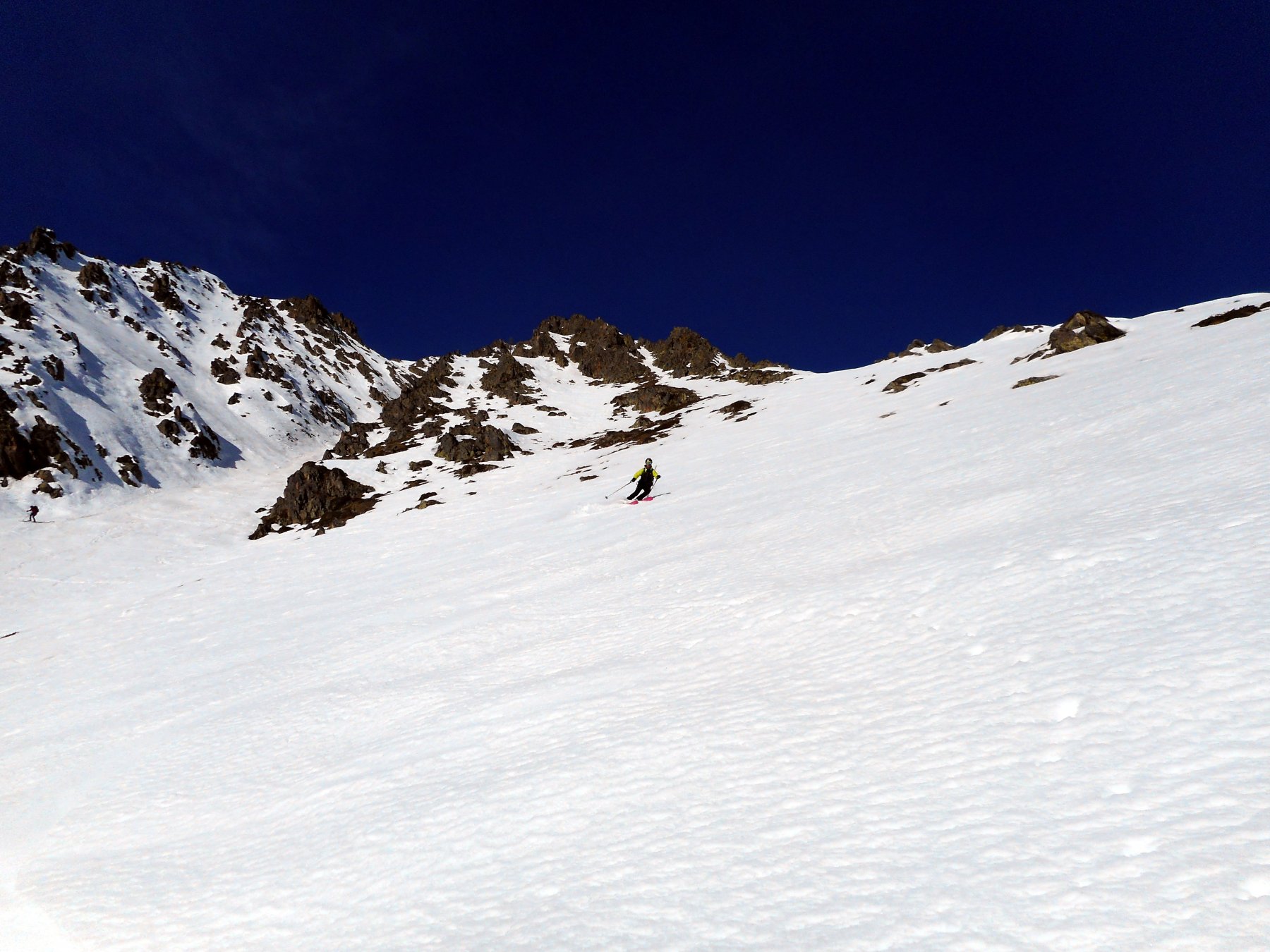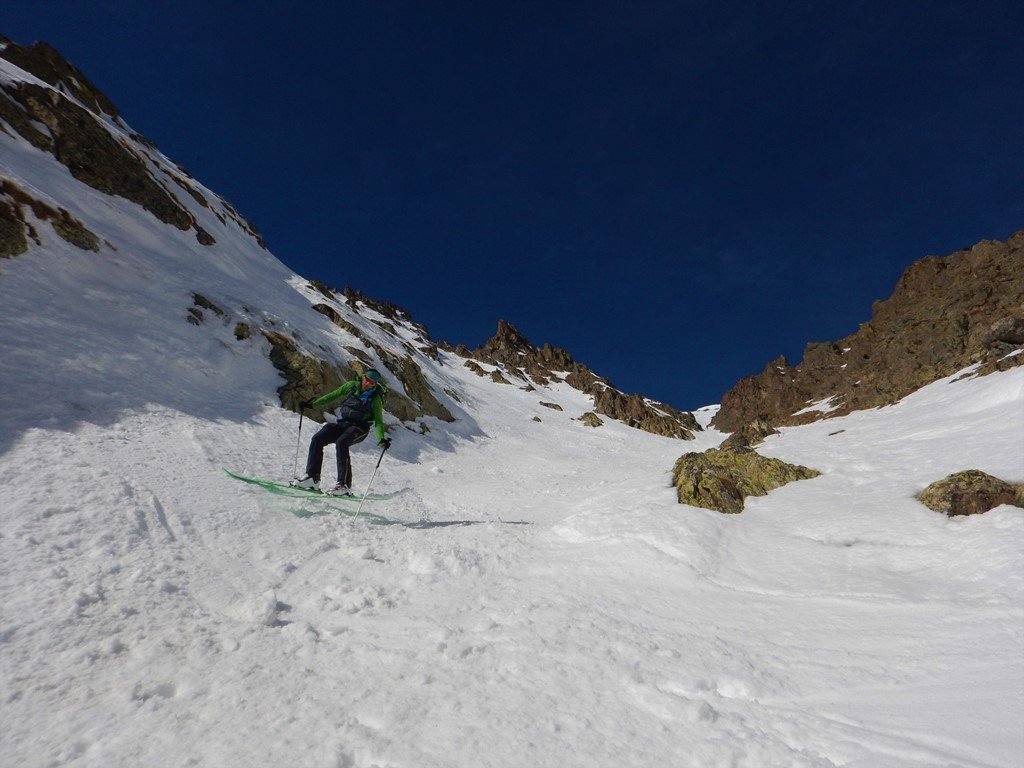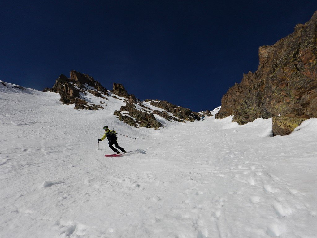 Chiaramente richiede condizioni di innevamento perfette e sicure da effettuare solo con neve assestata e quando le valanghe hanno già scaricato dai lati.