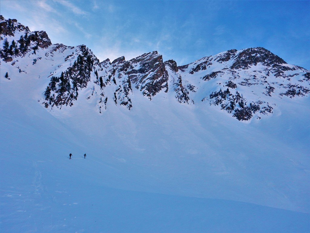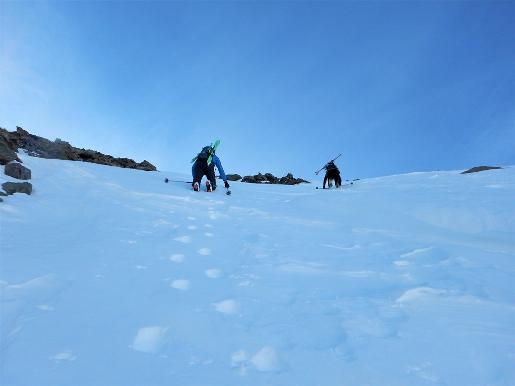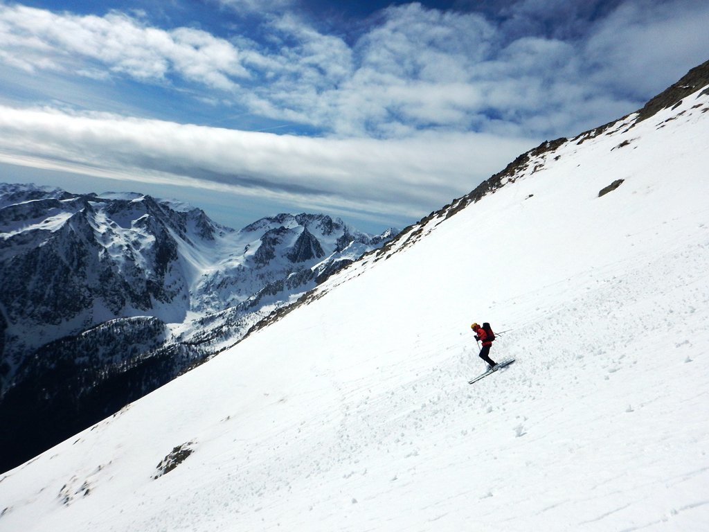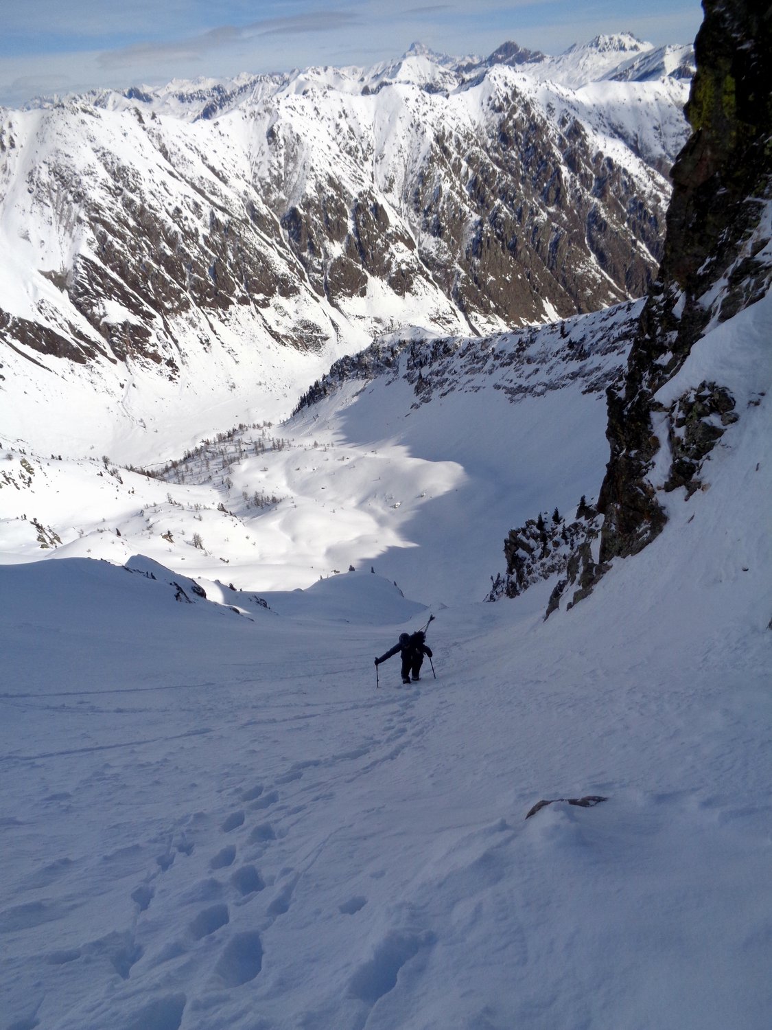 Chiaramente richiede condizioni di innevamento perfette e sicure da effettuare solo con neve assestata e quando le valanghe hanno già scaricato dai lati.